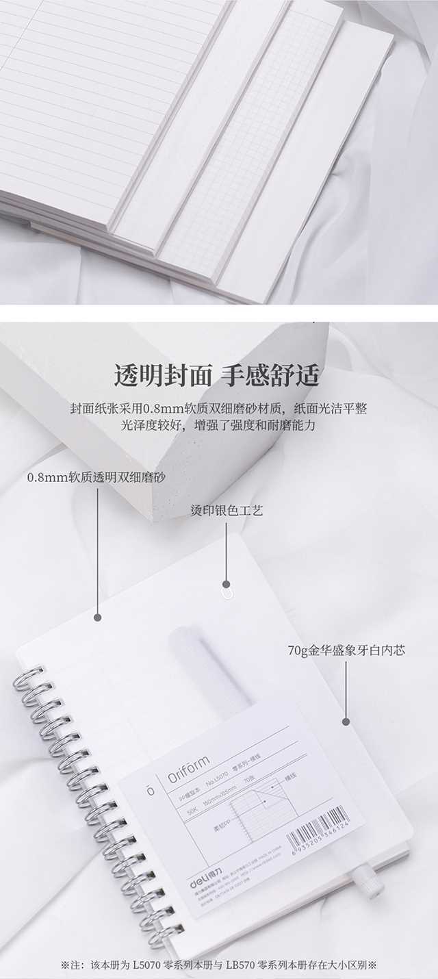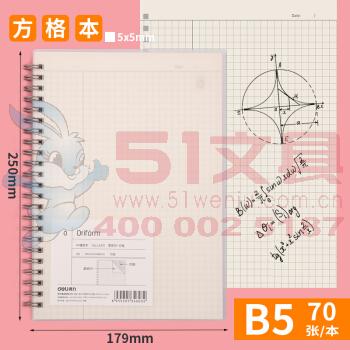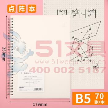 商品名称:得力LB570,B5 70页零系列螺旋本软抄本 点阵款记事本笔记本子 方格本 商品编号:11.01.04.1107 品牌:得力/deli 上架时间:2018-08-22 商品毛重:0克 包装含量:1/36/72 如果您发现商品信息不准确,欢迎纠错;如果您发现有比51文具价格更低的,欢迎举报