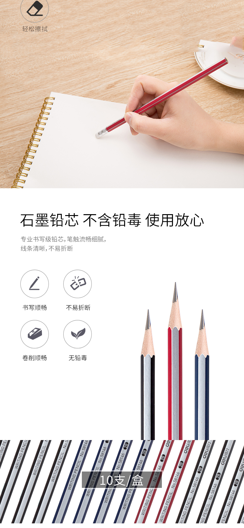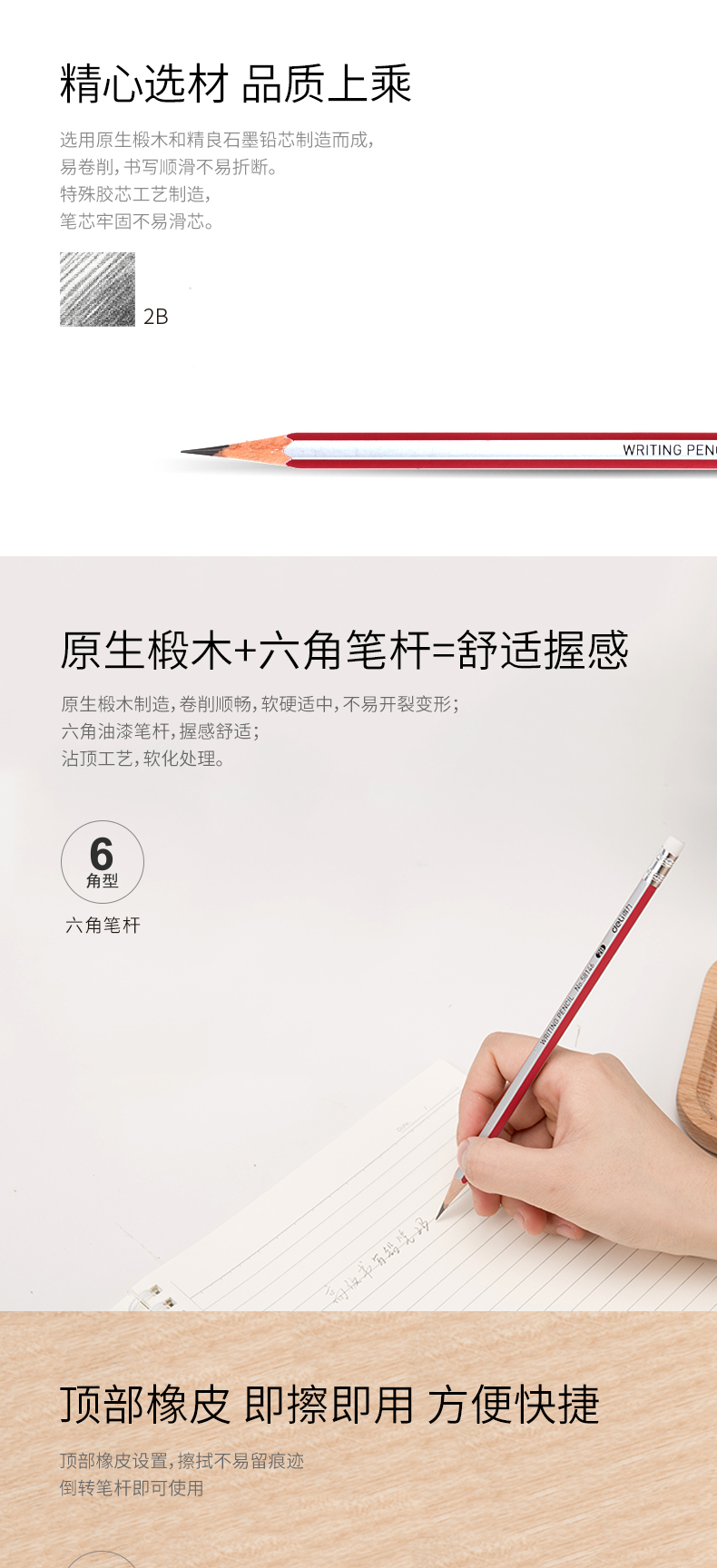 书写工具 [类型] 2B [是否带橡皮头] 带 [包装方式] 1/12/288