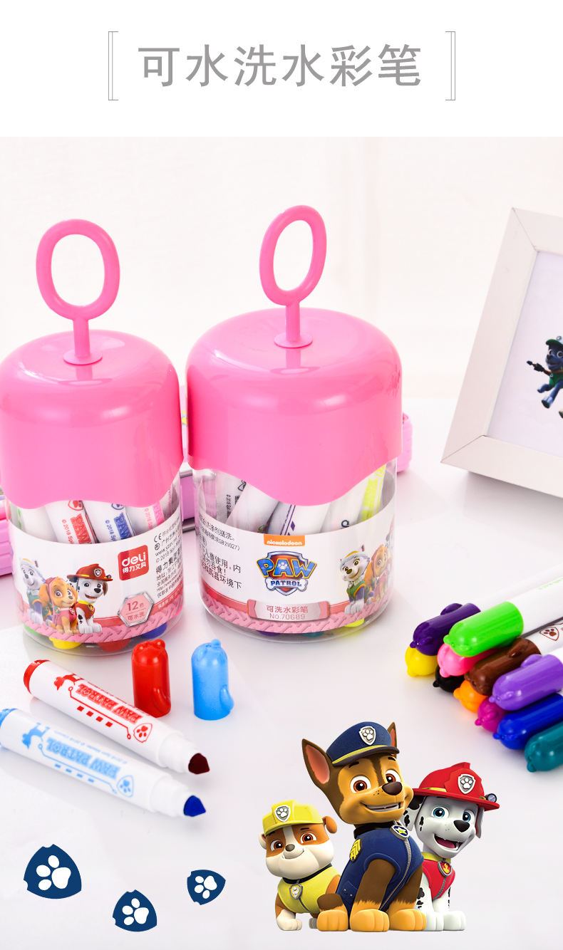 商品名称:得力70688,12色汪汪队立大功可水洗学生水彩笔儿童绘画笔 商品编号:11.05.01.70688 品牌:得力/deli 上架时间:2018-08-31 商品毛重:0克 颜色数:12色 包装含量:1/12/96 如果您发现商品信息不准确,欢迎纠错;如果您发现有比51文具价格更低的,欢迎举报