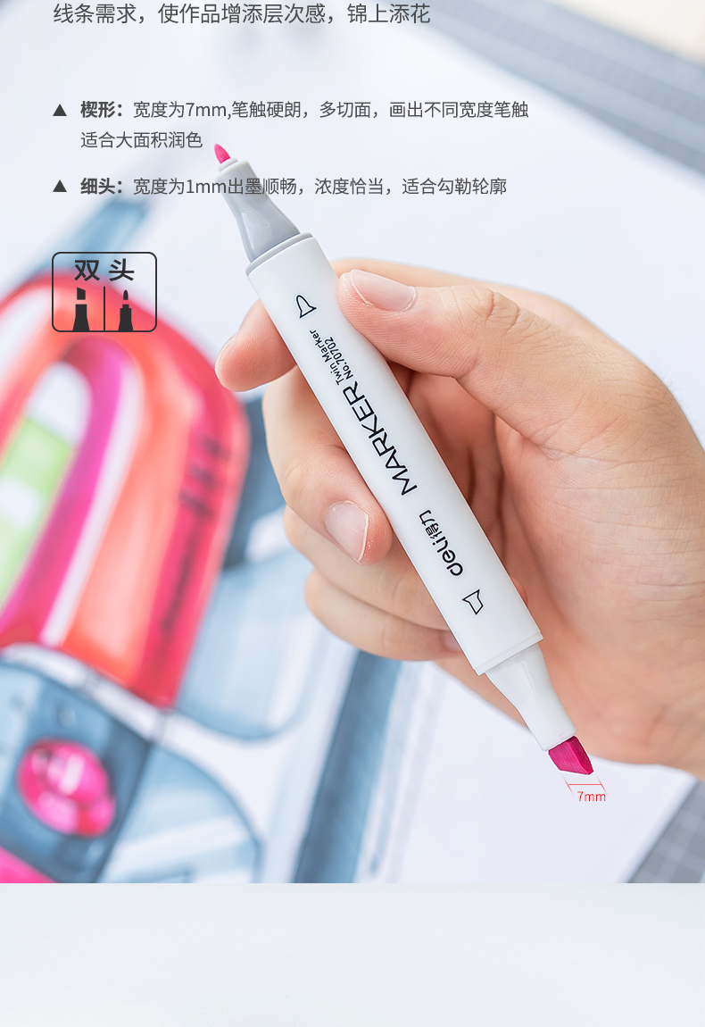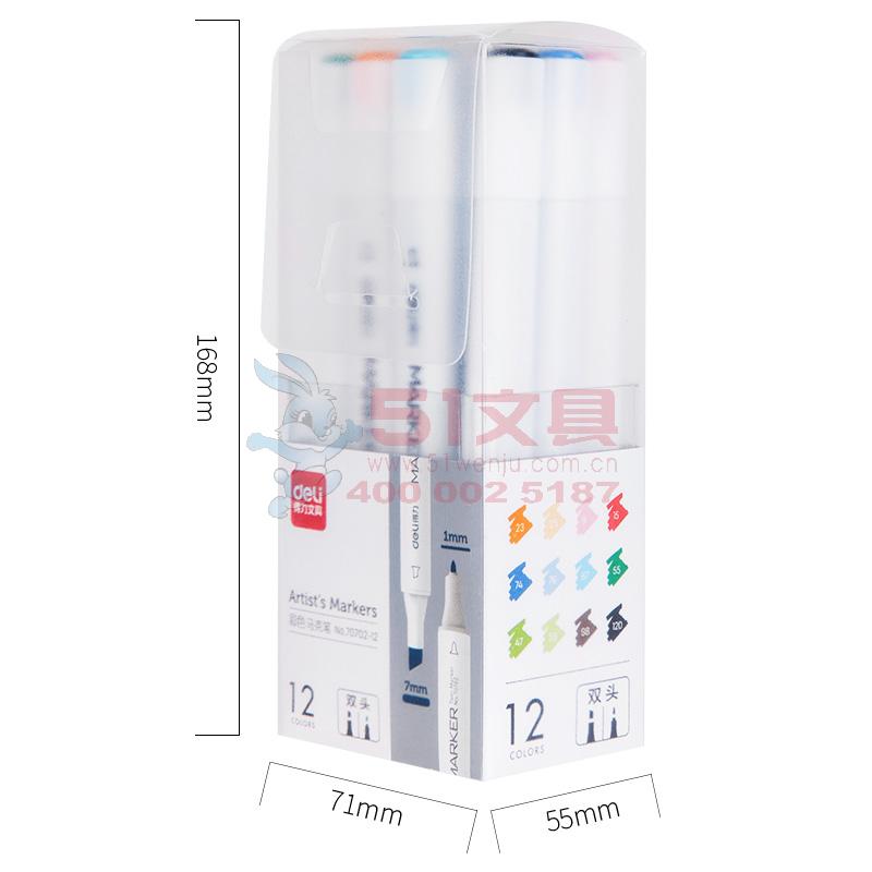 商品名称:得力70702-12,12色三角杆双头酒精油性马克笔套装 学生手绘漫画设计绘画彩笔画笔记号笔 商品编号:11.05.04.70702A 品牌:得力/deli 上架时间:2018-09-03 商品毛重:0克 颜色数:12色 包装含量:1/48 如果您发现商品信息不准确,欢迎纠错;如果您发现有比51文具价格更低的,欢迎举报