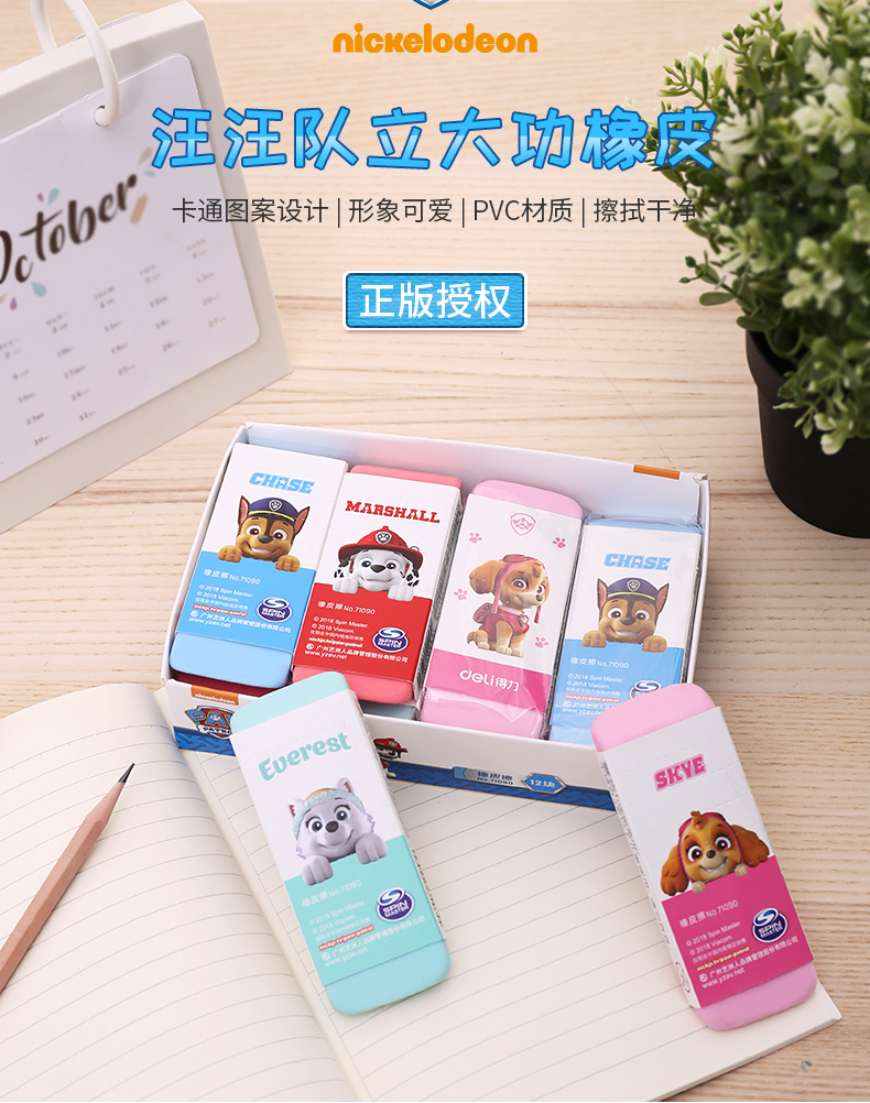 商品名称:得力71090,汪汪队立大功橡皮擦(1/12/192) 干净不留痕卡通可爱大橡皮 商品编号:11.13.01.71090 品牌:得力/deli 上架时间:2018-09-05 商品毛重:0克 如果您发现商品信息不准确,欢迎纠错;如果您发现有比51文具价格更低的,欢迎举报
