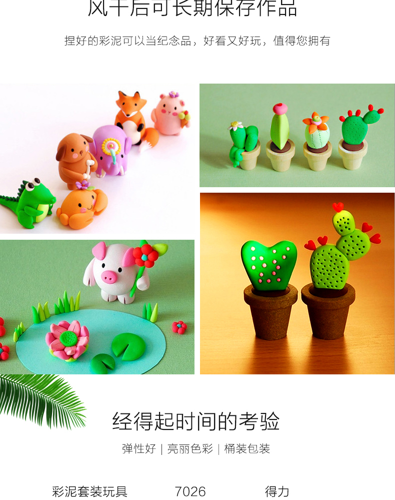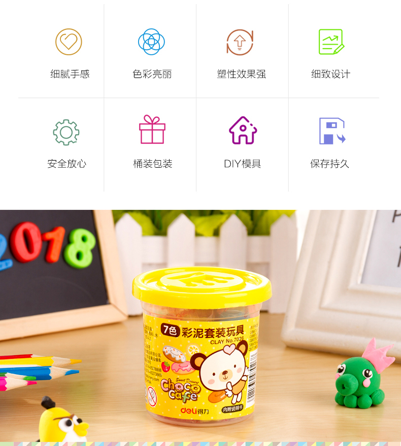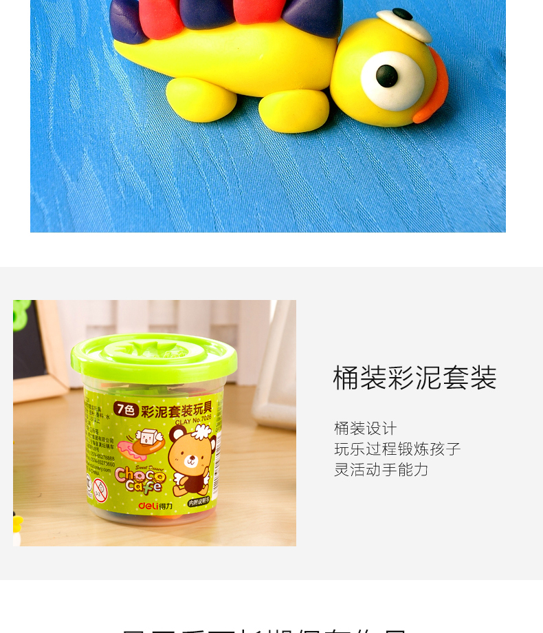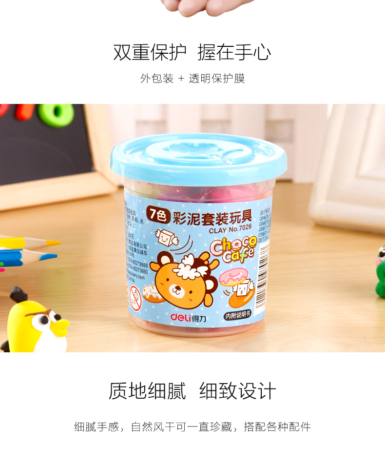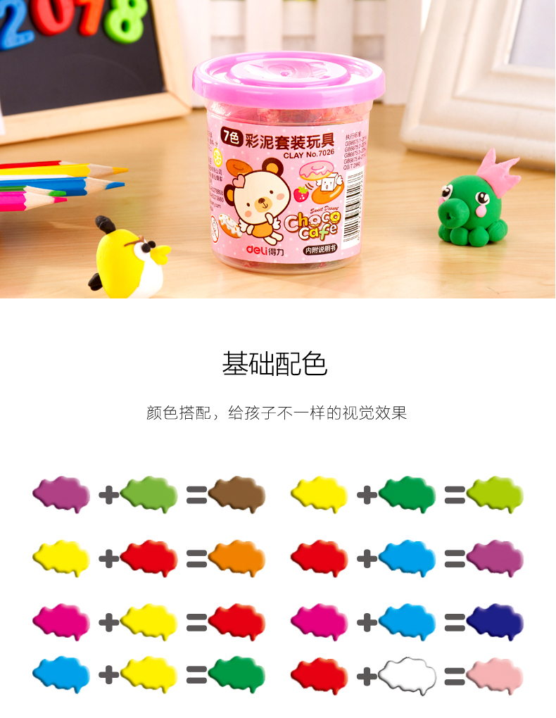 商品名称:得力7026,7色儿童橡皮泥(1/16/96)彩泥含模具学生美术用品 儿童益智玩具 商品编号:11.21.01.7026 品牌:得力/deli 上架时间:2018-09-09 商品毛重:0克 包装含量:1/16/96 如果您发现商品信息不准确,欢迎纠错;如果您发现有比51文具价格更低的,欢迎举报
