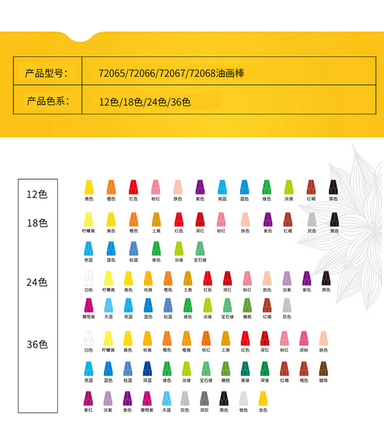 商品属性 [颜色数] 24色 [包装含量] 1/12/72