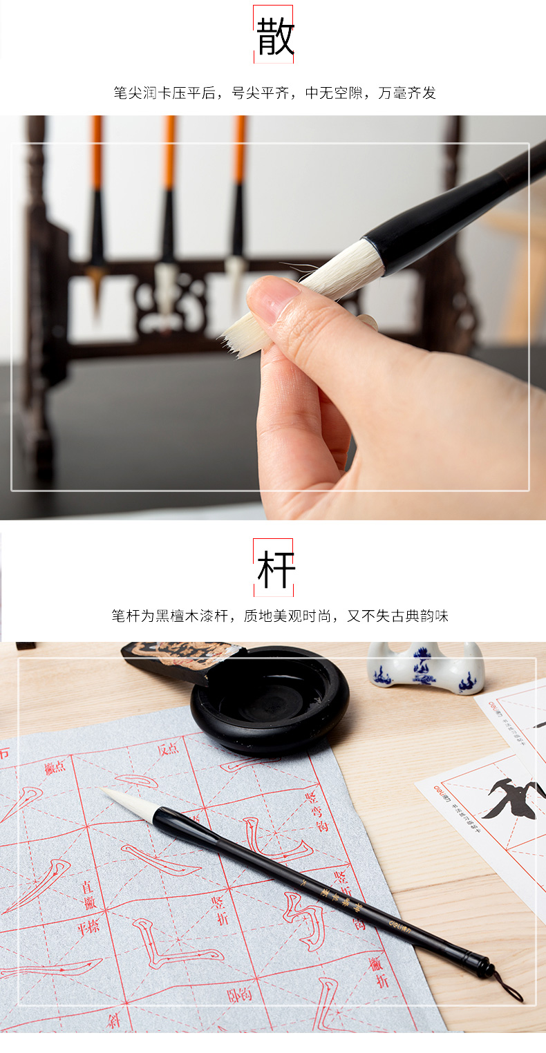 商品名称:得力74288,大号进阶级羊毫毛笔学生练字专用毛笔国画儿童书法练字 商品编号:11.03.21.74288 品牌:得力/deli 上架时间:2018-09-16 商品毛重:0克 如果您发现商品信息不准确,欢迎纠错;如果您发现有比51文具价格更低的,欢迎举报