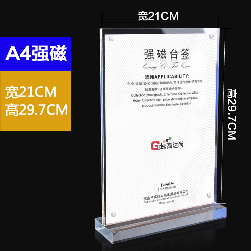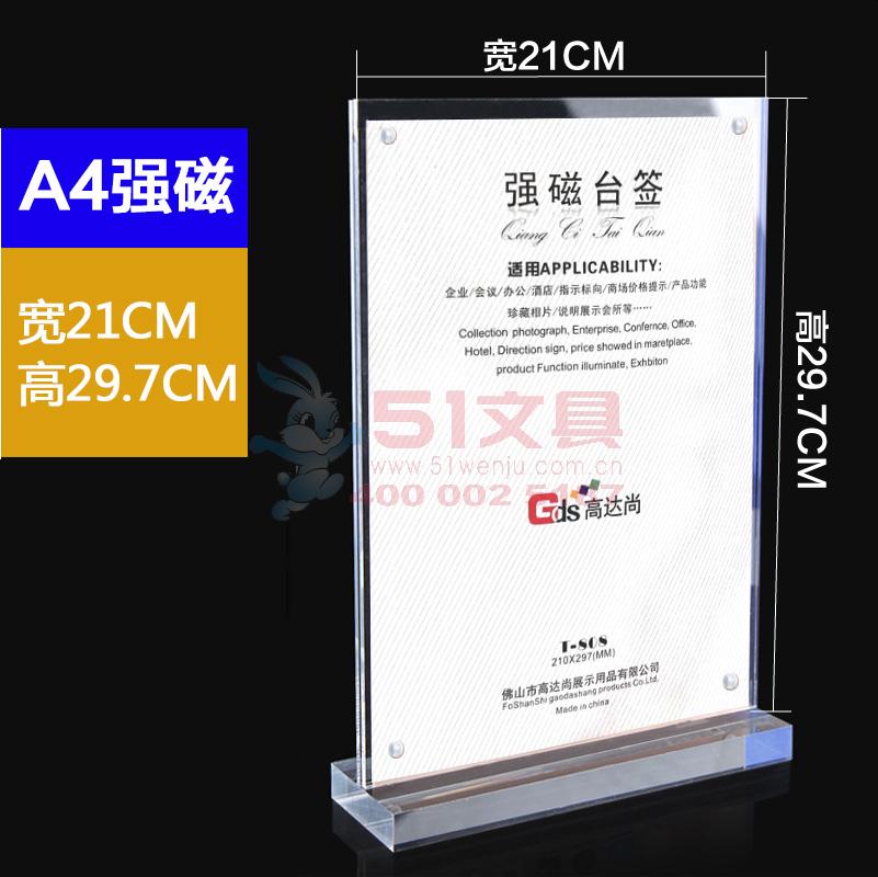 商品名称:高达尚808,A4竖式T型亚克力强磁台签台牌展示牌台卡立牌价格酒水牌桌签 商品编号:81.12.02.0224 品牌:其他 上架时间:2018-09-26 商品毛重:0克 如果您发现商品信息不准确,欢迎纠错;如果您发现有比51文具价格更低的,欢迎举报