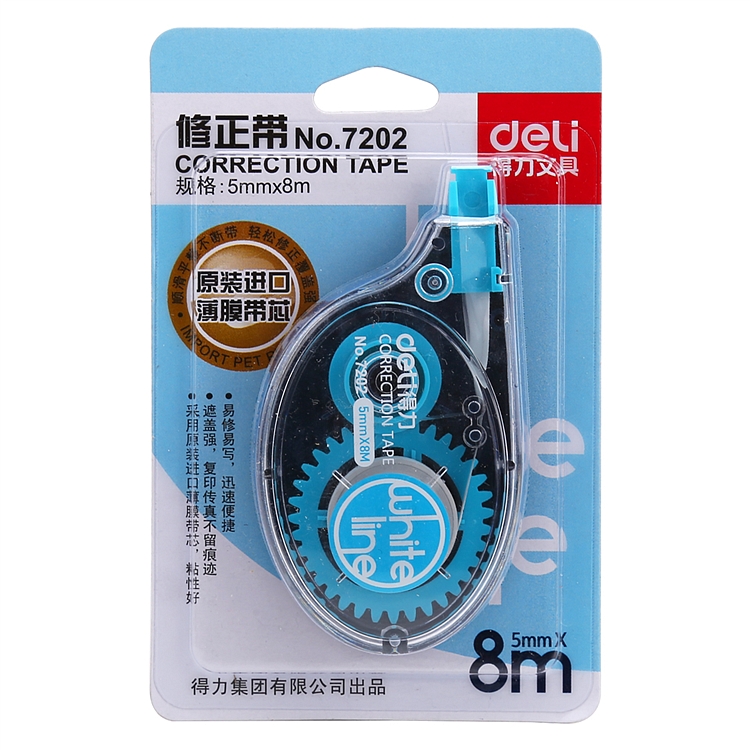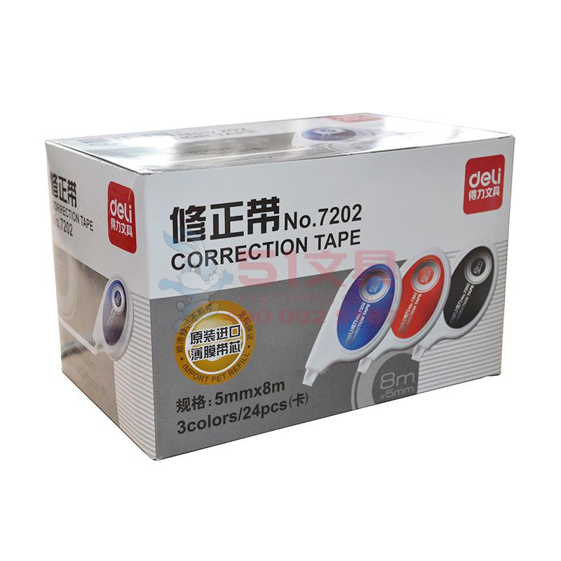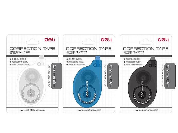 商品名称:得力7202,5mm*8m时尚彩色日修正带修改带 涂改带转轮修正带 商品编号:11.13.03.7202 品牌:得力/deli 上架时间:2018-10-06 商品毛重:0克 如果您发现商品信息不准确,欢迎纠错;如果您发现有比51文具价格更低的,欢迎举报