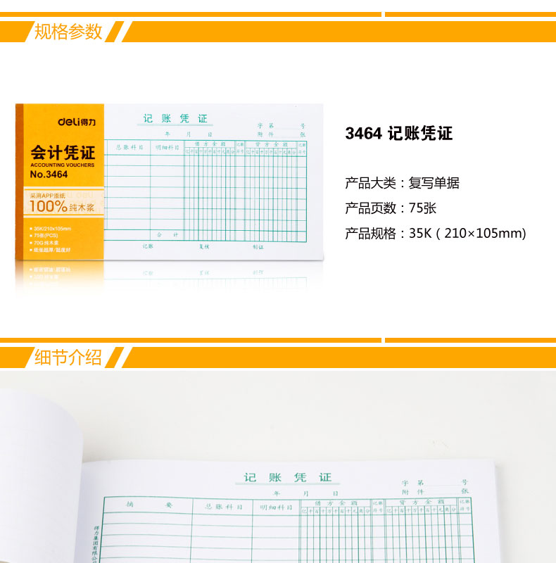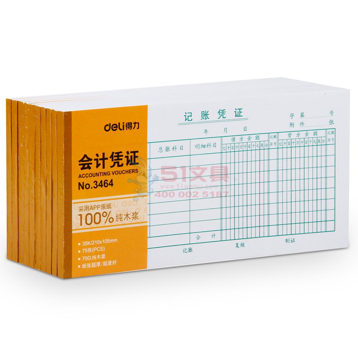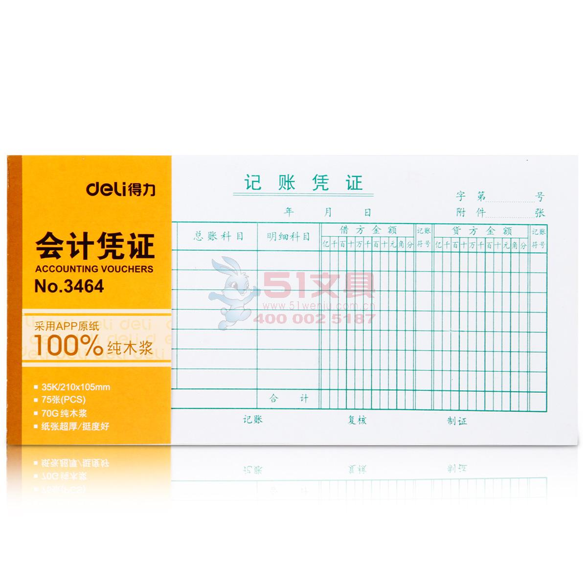 商品名称:得力3464,35K双金额记账凭证(1/10/180)通用空白凭证纸会计记账凭证小号-75张 210*105mm 商品编号:12.05.49.3464 品牌:文具/LZN 上架时间:2018-10-18 商品毛重:0克 如果您发现商品信息不准确,欢迎纠错;如果您发现有比51文具价格更低的,欢迎举报