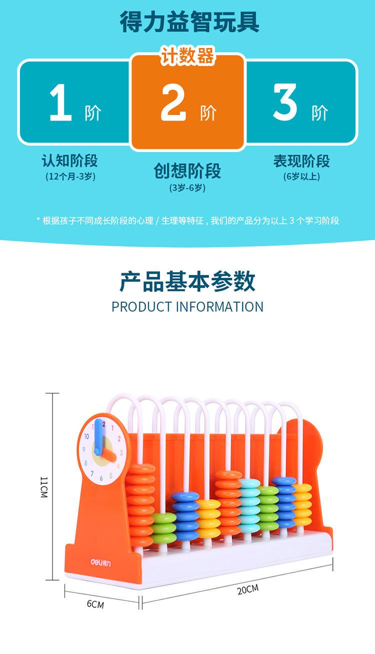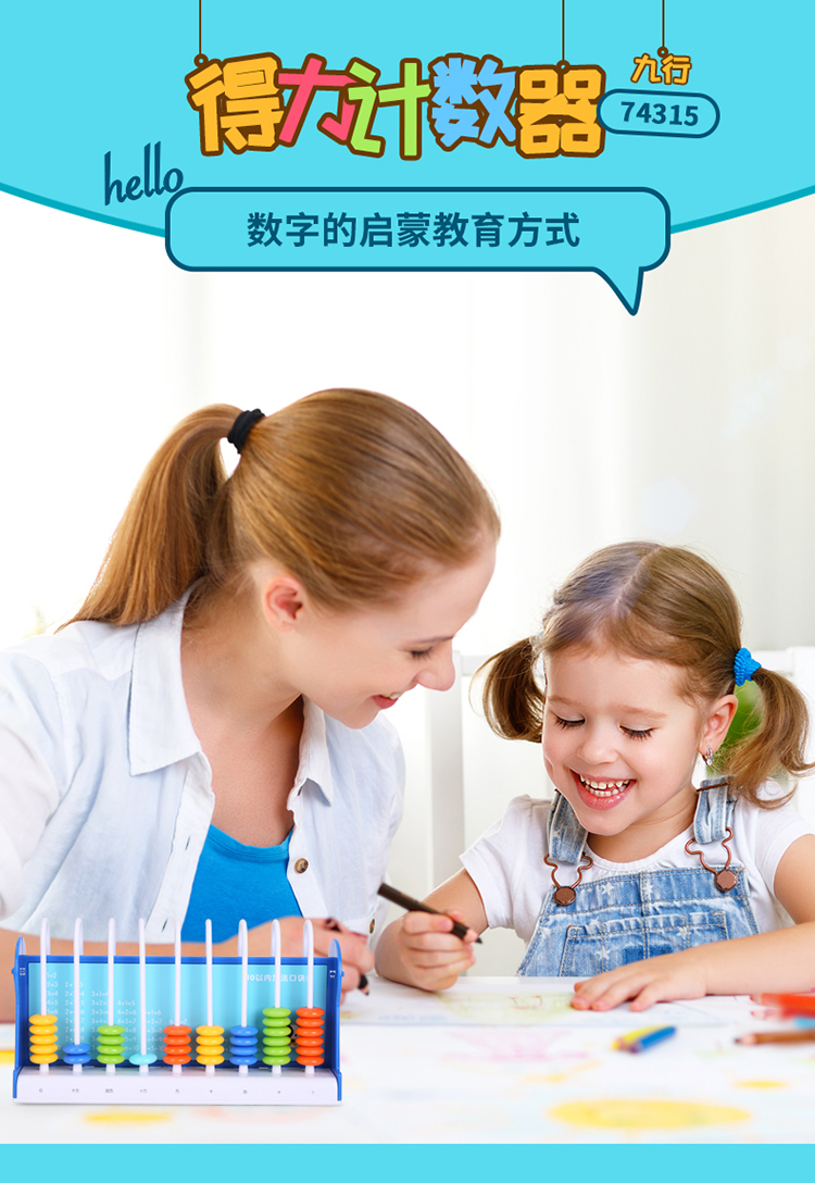 商品名称:得力74315,9行儿童计数器(1/12/48)益智学习教具学生加减法数学计算架益智玩具 商品编号:11.11.08.74315 品牌:得力/deli 上架时间:2018-11-06 商品毛重:0克 如果您发现商品信息不准确,欢迎纠错;如果您发现有比51文具价格更低的,欢迎举报