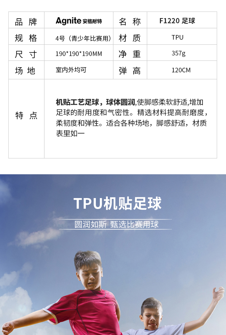 商品名称:安格耐特F1220,4号足球(1/24)青少年足球室内外训练比赛足球 商品编号:72.01.02.1220 品牌:安格耐特/Agnite 上架时间:2018-11-08 商品毛重:0克 如果您发现商品信息不准确,欢迎纠错;如果您发现有比51文具价格更低的,欢迎举报