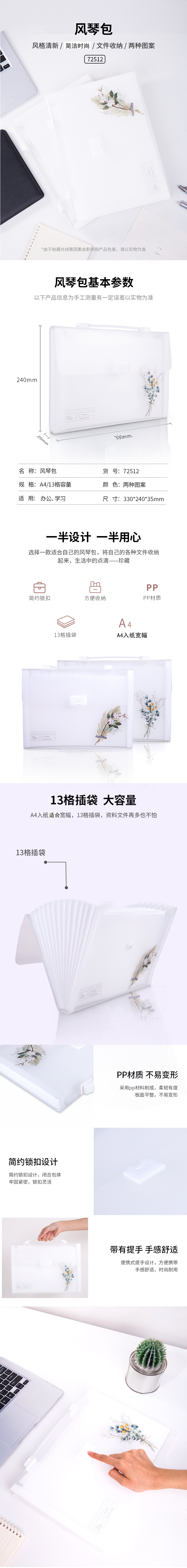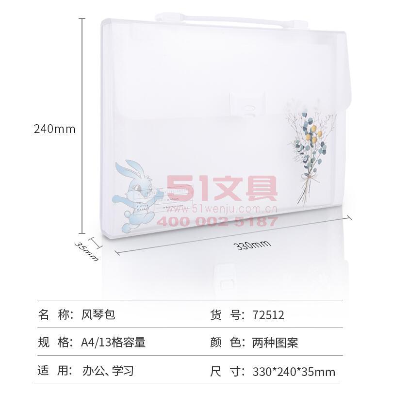 商品名称:得力72512,13格 A4风琴事务包(1/12/48)资料册文件袋学生大容量办公收纳盒清新 商品编号:11.02.05.72512 品牌:得力/deli 上架时间:2018-11-09 商品毛重:0克 如果您发现商品信息不准确,欢迎纠错;如果您发现有比51文具价格更低的,欢迎举报