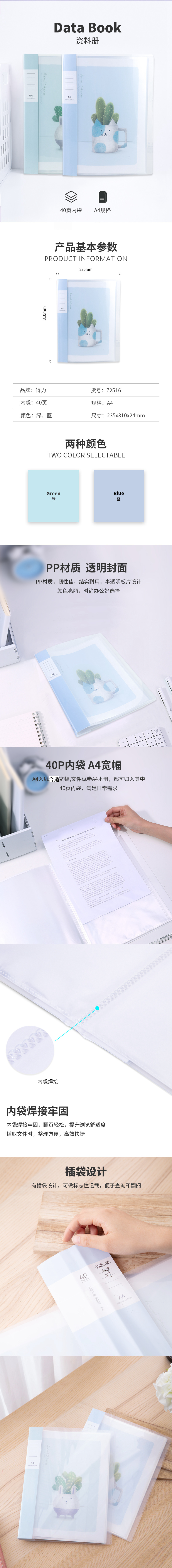 商品名称:得力72516,A4 40页资料册试卷袋(1/12/48)透明插页学生资料袋办公文件收纳文件袋 商品编号:11.02.02.72516 品牌:得力/deli 上架时间:2018-11-09 商品毛重:0克 如果您发现商品信息不准确,欢迎纠错;如果您发现有比51文具价格更低的,欢迎举报