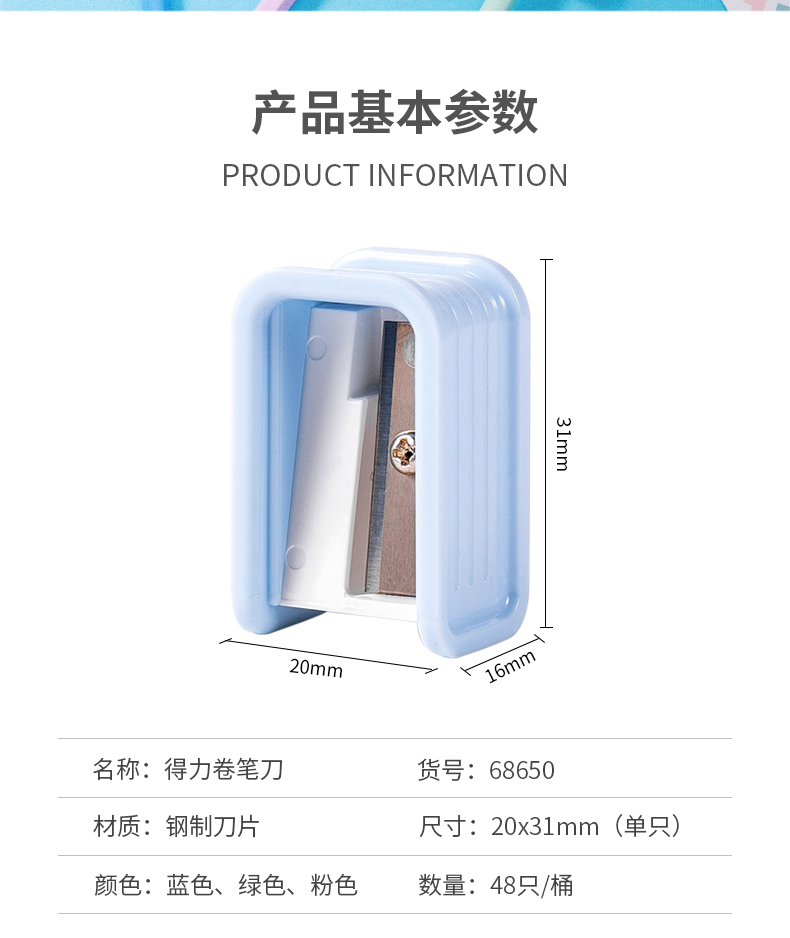 商品名称:得力68650,笔刨卷笔刀 迷你转笔刀(1/48/1152)铅笔卷笔器削笔器小型转笔刀笔刨 商品编号:11.11.03.68650 品牌:得力/deli 上架时间:2018-11-23 商品毛重:0克 如果您发现商品信息不准确,欢迎纠错;如果您发现有比51文具价格更低的,欢迎举报