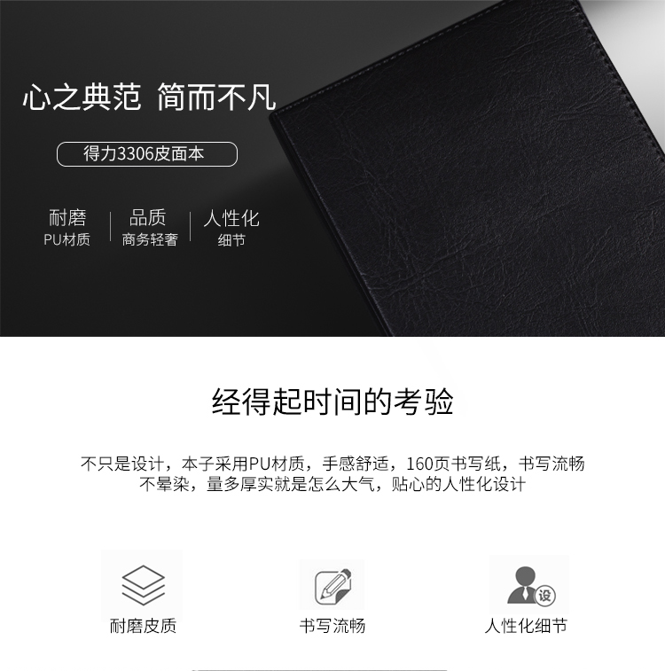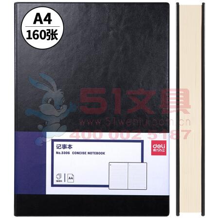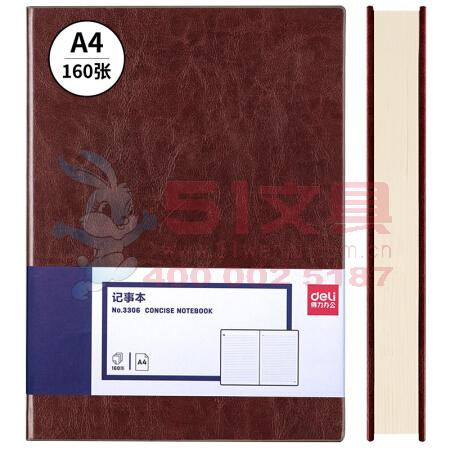 商品名称:得力3306,A4,160张商务皮面本(1/12/24)160张320页特厚皮面本 得力皮本 商品编号:12.05.02.3306 品牌:文具/LZN 上架时间:2019-01-18 商品毛重:0克 包装含量:1/12/24 如果您发现商品信息不准确,欢迎纠错;如果您发现有比51文具价格更低的,欢迎举报