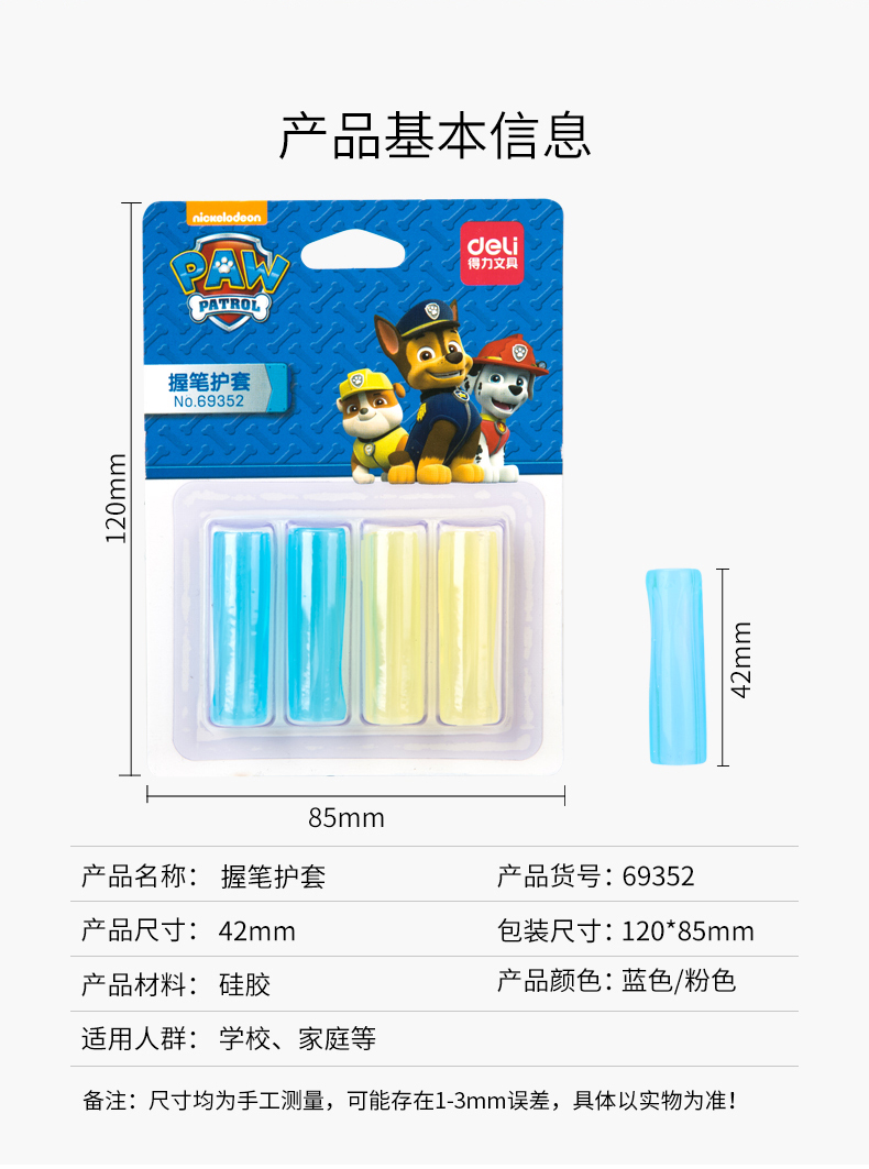 商品名称:得力69352,汪汪队握笔器(1/24/288)儿童款初学者幼儿园学生矫正握笔纠正握 商品编号:11.03.31.69352 品牌:得力/deli 上架时间:2019-03-15 商品毛重:0克 如果您发现商品信息不准确,欢迎纠错;如果您发现有比51文具价格更低的,欢迎举报