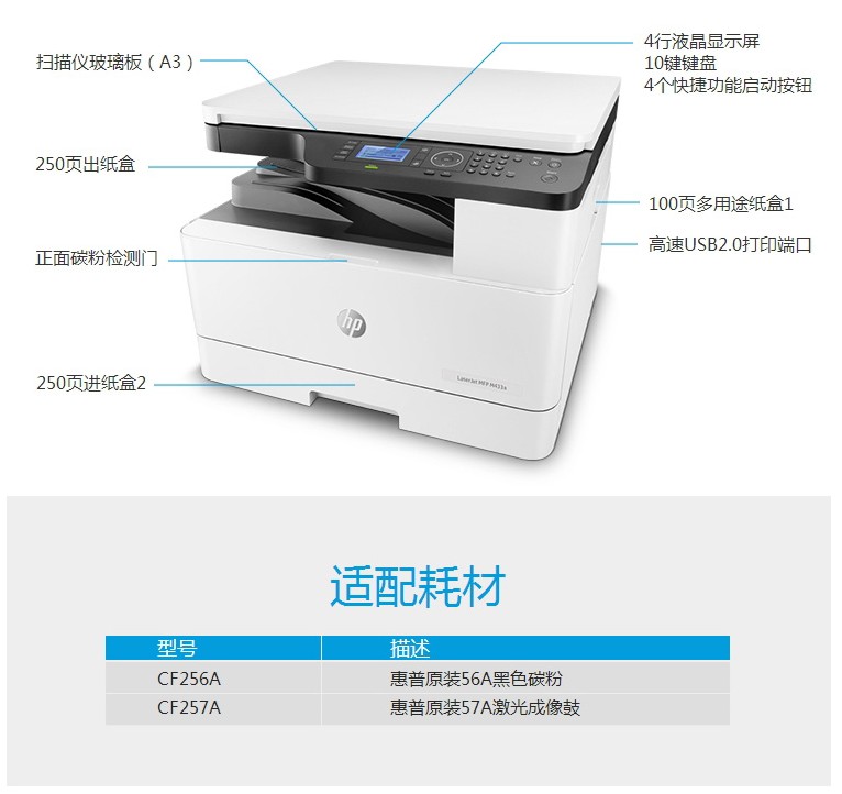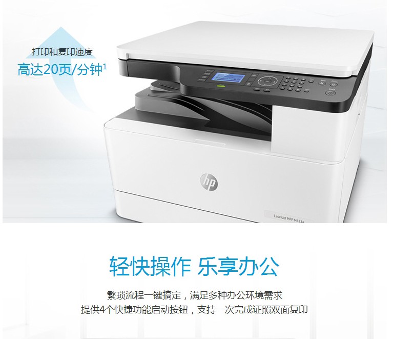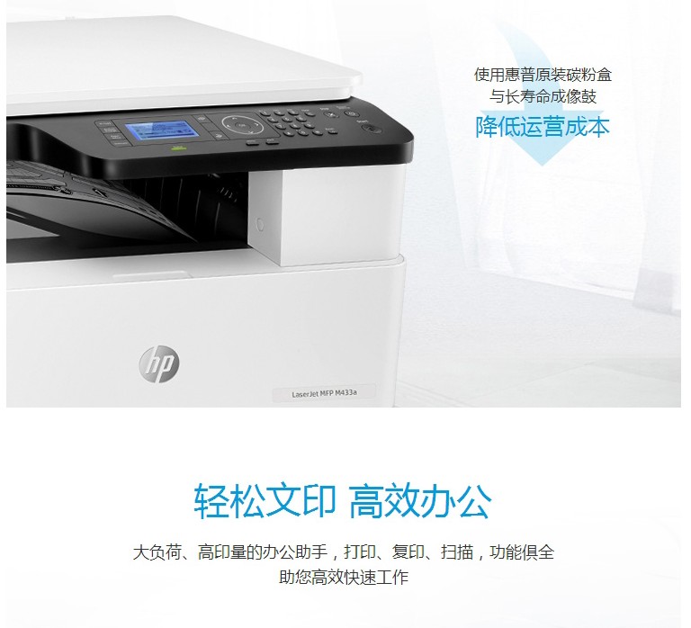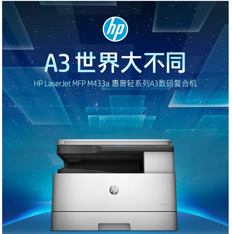商品名称:惠普M433A,黑白激光A3打印机(1/1)A3复印扫描多功能一体机数码复合机 商品编号:85.01.01.0433 品牌:惠普/HP 上架时间:2019-04-22 商品毛重:0克 如果您发现商品信息不准确,欢迎纠错;如果您发现有比51文具价格更低的,欢迎举报