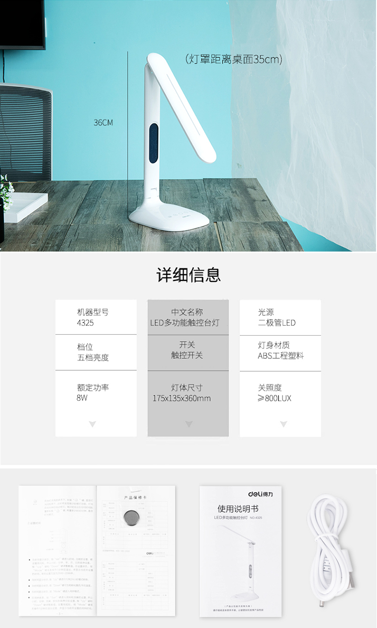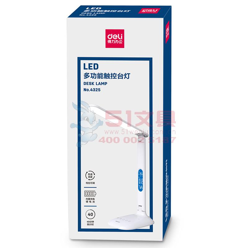 商品名称:得力4325,台灯LED多功能触控护眼灯(1/10)学生可充电宿舍桌面床头灯 商品编号:12.08.81.4325 品牌:文具/LZN 上架时间:2019-05-20 商品毛重:0克 如果您发现商品信息不准确,欢迎纠错;如果您发现有比51文具价格更低的,欢迎举报
