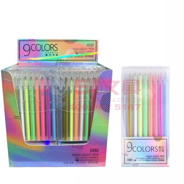商品名称:风景FZ3913,高光水笔点睛之笔(9/360/1728)学生用diy黑卡纸高光手帐专用彩色水笔金属粉彩啫喱-九色(金色/银色/白色/黄色/绿色/橙色/粉红/紫色/蓝色) 商品编号:ECS012026 品牌:风景 上架时间:2019-05-22 商品毛重:0克 价格单位:盒 笔头粗细:0.5mm 包装含量:9/360/1728 如果您发现商品信息不准确,欢迎纠错;如果您发现有比51文具价格更低的,欢迎举报