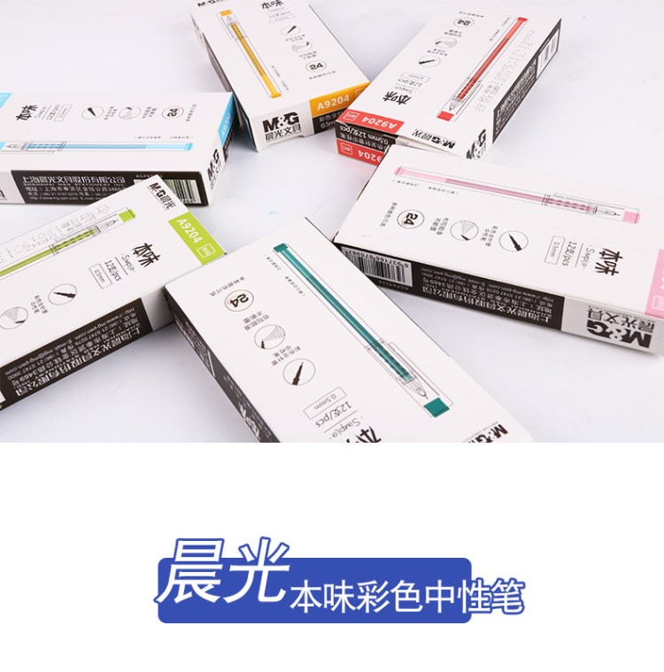 商品名称:晨光A9204,0.5mm本味彩色全针管中性笔(12/144/1728)透明杆彩虹笔一盒12支 黑色 商品编号:16.03.01.9204A 品牌:晨光/M&G 上架时间:2019-06-11 商品毛重:0克 价格单位:支 笔头类型:全针管 笔头粗细:0.5mm 包装含量:12/144/1728 如果您发现商品信息不准确,欢迎纠错;如果您发现有比51文具价格更低的,欢迎举报