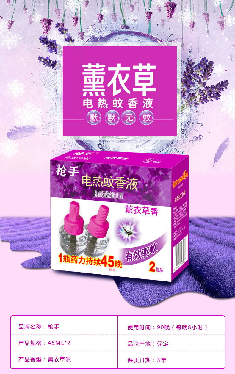 商品名称:枪手45M*2瓶电蚊香液补充装薰衣草味电热驱蚊液(1/30)液体蚊香液家用插电式 商品编号:89.21.13.9119B 品牌:枪手/GUNNER 上架时间:2019-06-14 商品毛重:0克 如果您发现商品信息不准确,欢迎纠错;如果您发现有比51文具价格更低的,欢迎举报