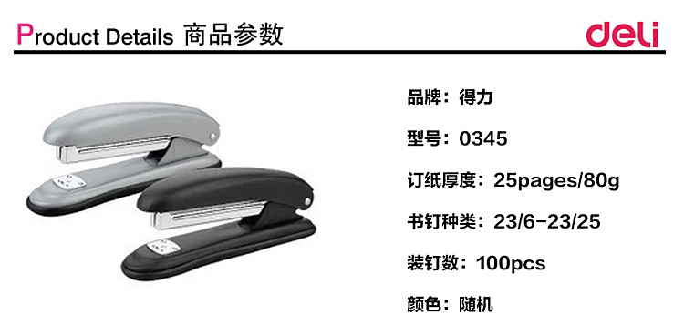 商品名称:得力0345,12#订书机 商品编号:12.02.01.0345 品牌:文具/LZN 上架时间:2017-09-25 商品毛重:0克 规格:12# 含量:1/6/72 起订量:个 如果您发现商品信息不准确,欢迎纠错;如果您发现有比51文具价格更低的,欢迎举报