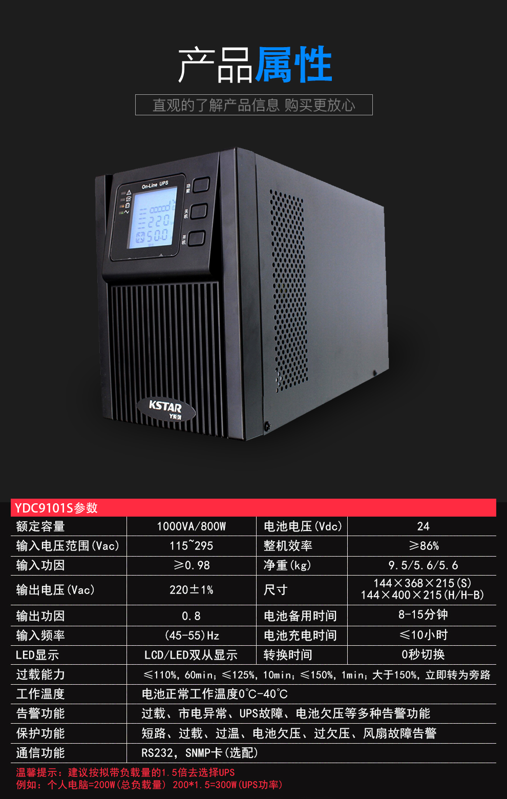 商品名称:科士达(KSTAR) YDC9101S 1000VA/800W UPS 商品编号:ECS012418 品牌:科士达/Kstar 上架时间:2019-07-09 商品毛重:0克 如果您发现商品信息不准确,欢迎纠错;如果您发现有比51文具价格更低的,欢迎举报