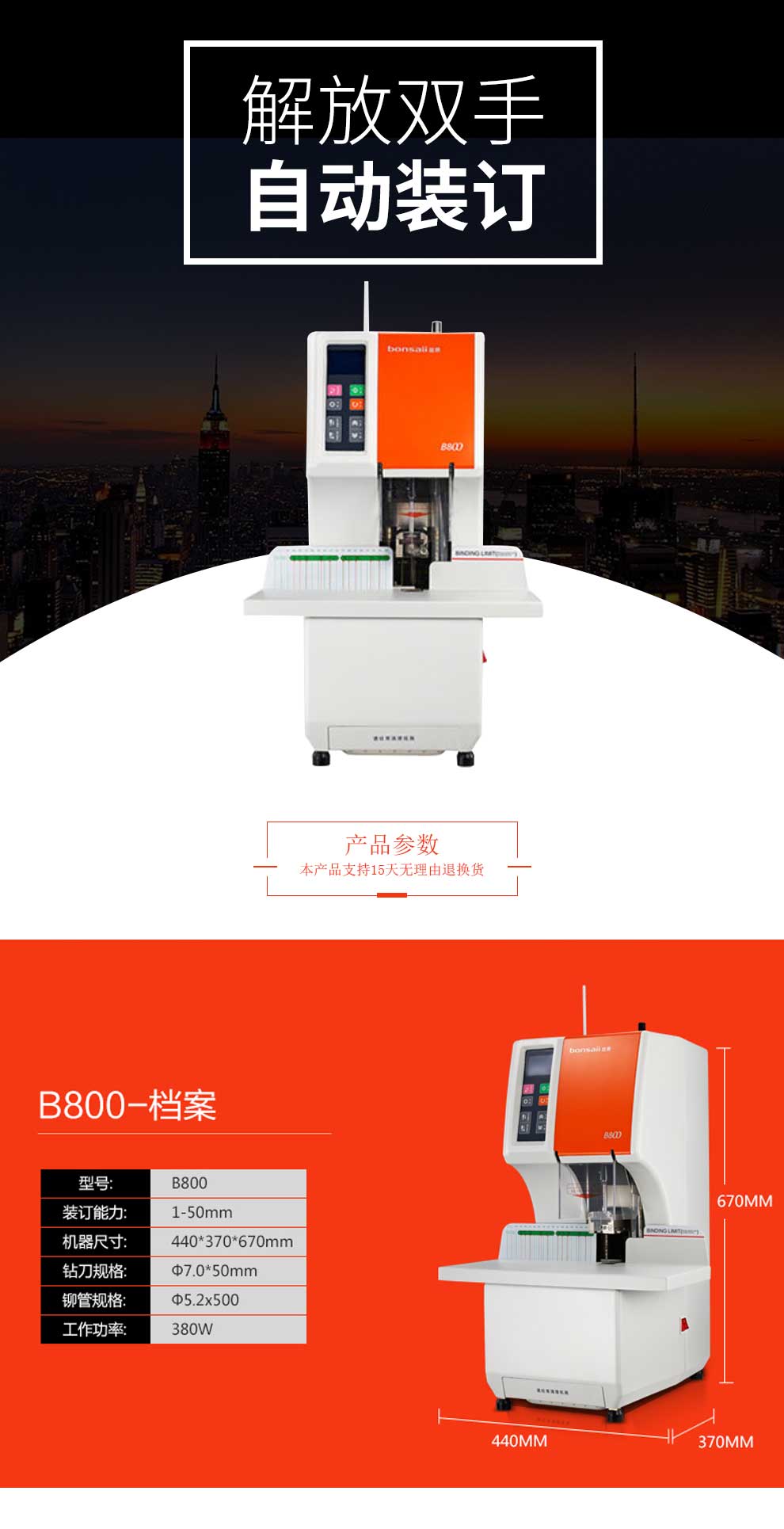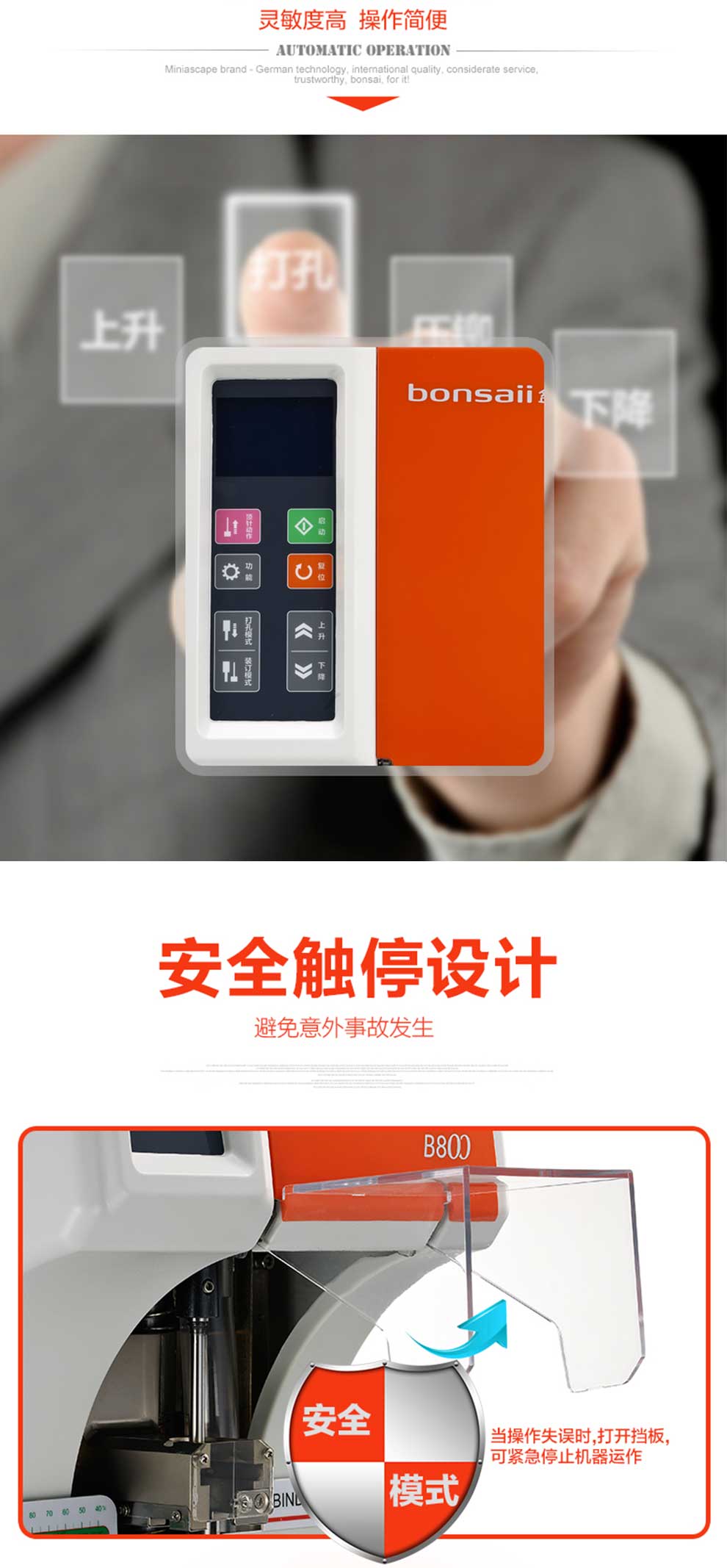 商品名称:盆景(bonsaii) B800装订机 全自动财务凭证装订机 触摸按键热熔铆管装订机 商品编号:ECS012594 品牌:盆景/bonsaii 上架时间:2019-07-12 商品毛重:0克 如果您发现商品信息不准确,欢迎纠错;如果您发现有比51文具价格更低的,欢迎举报