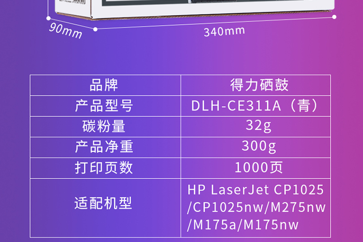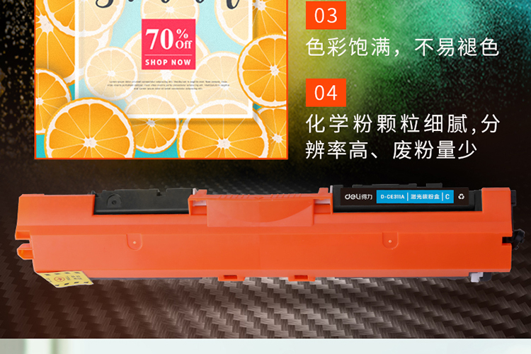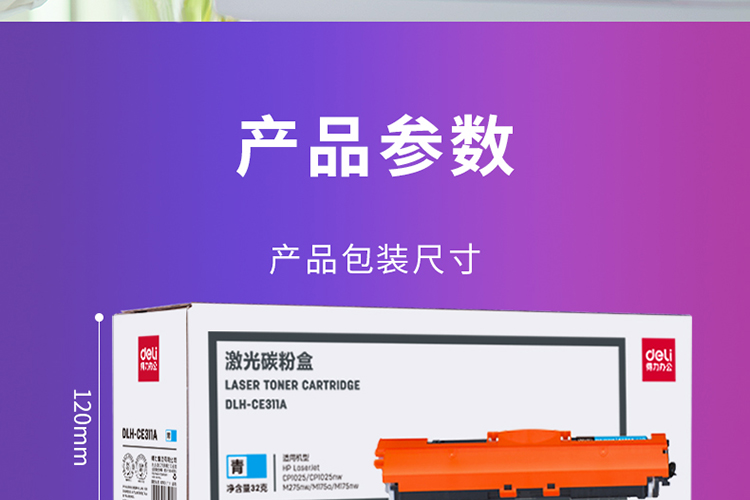 商品名称:得力(deli)DLH-CE311A 126A蓝色(青色)硒鼓粉盒(适用惠普HP CP1025/CP1025nw/M275nw M175a/M175nw) 商品编号:ECS012612 品牌:得力/deli 上架时间:2019-07-16 商品毛重:0克 型号:DLH-CE311A 如果您发现商品信息不准确,欢迎纠错;如果您发现有比51文具价格更低的,欢迎举报