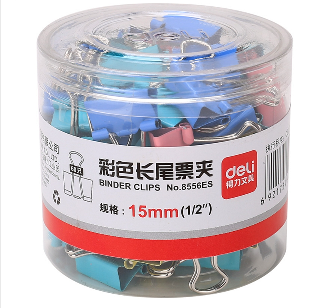 商品名称:得力 8556ES 彩色长尾夹 15mm 60只/筒 (单位:筒) 彩色 商品编号:ECS013122 品牌:得力/deli 上架时间:2021-10-19 商品毛重:0克 型号:8556ES 如果您发现商品信息不准确,欢迎纠错;如果您发现有比51文具价格更低的,欢迎举报