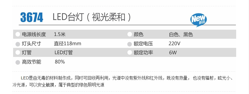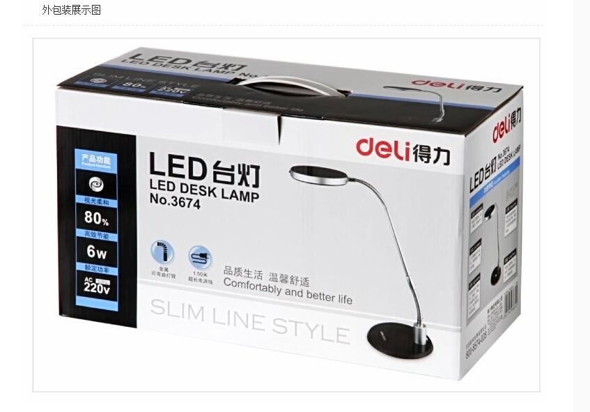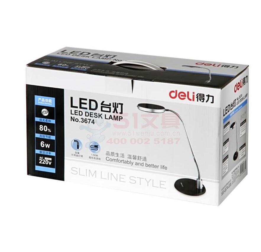 商品名称:得力3674,LED台灯 商品编号:12.08.81.0174 品牌:文具/LZN 上架时间:2015-06-02 商品毛重:0克 含量:1*12 如果您发现商品信息不准确,欢迎纠错;如果您发现有比51文具价格更低的,欢迎举报