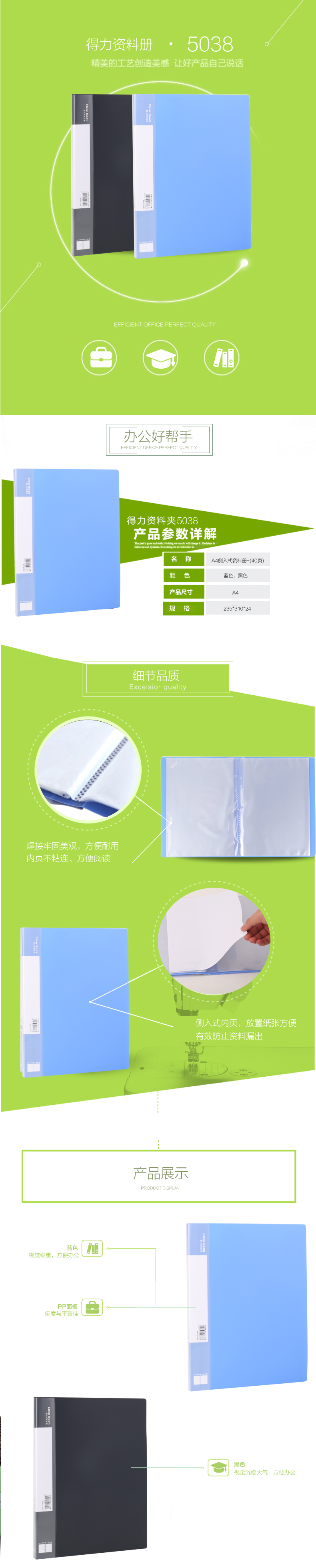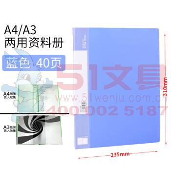 - 商品名称:得力5038,40页侧入式资料册(1/12/48)A4/A3通用 A3资料册 A3文件册