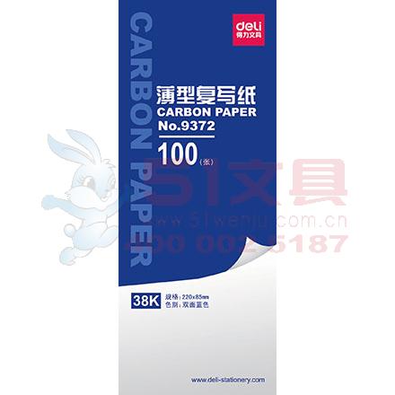 商品名称:得力9372,38K复写纸220*85mm 商品编号:12.05.49.0472 品牌:文具/LZN 上架时间:2016-01-12 商品毛重:0克 规格:220*85mm 含量:1/5/100 起批量:中包 如果您发现商品信息不准确,欢迎纠错;如果您发现有比51文具价格更低的,欢迎举报