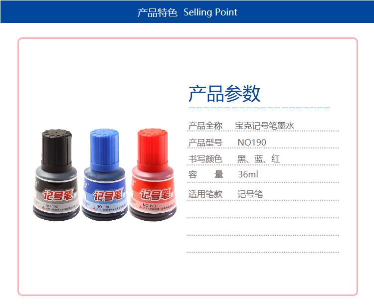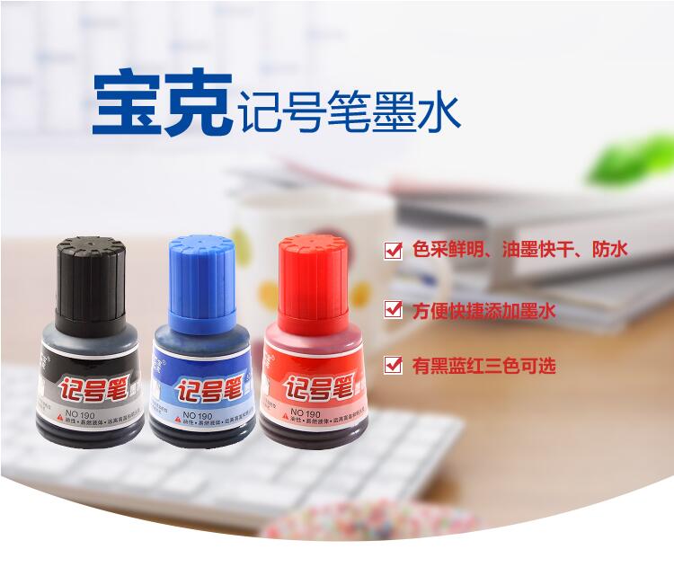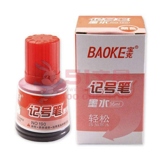 商品名称:190 宝克 记号笔水36ml 商品编号:14.01.03.0190B 品牌:宝克/BAOKE 上架时间:2016-07-04 商品毛重:0克 如果您发现商品信息不准确,欢迎纠错;如果您发现有比51文具价格更低的,欢迎举报
