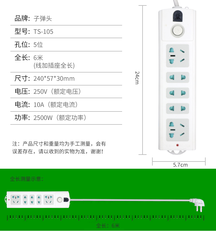 商品名称:子弹头TS105,6米超长线安全排插(1/40),2+3安全插座6米线长,2位五孔+3位两孔排插,总控开关插座/插排/插线板/接线板/排插/拖线板 商品编号:ECS004472 品牌:子弹头 上架时间:2016-07-07 商品毛重:0克 如果您发现商品信息不准确,欢迎纠错;如果您发现有比51文具价格更低的,欢迎举报