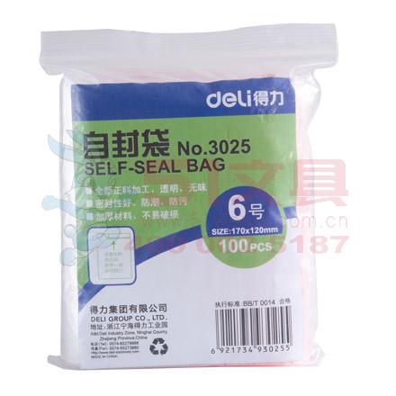 商品名称:得力3025,自封袋-6号/170×120mm(100只装) 商品编号:12.08.05.3025 品牌:文具/LZN 上架时间:2016-08-10 商品毛重:0克 如果您发现商品信息不准确,欢迎纠错;如果您发现有比51文具价格更低的,欢迎举报