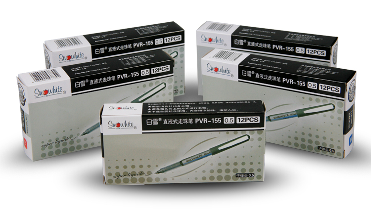商品名称:白雪155,0.5mm子弹头走珠笔(爆款一口价),PVR155直液式走珠笔学生考试笔办公中性笔水性笔签字笔 商品编号:15.01.01.0155 品牌:白雪/SNOWHITE 上架时间:2016-09-07 商品毛重:0克 价格单位:支 笔头类型:子弹头 笔头粗细:0.5mm 包装含量:12/72/1728 如果您发现商品信息不准确,欢迎纠错;如果您发现有比51文具价格更低的,欢迎举报
