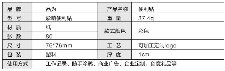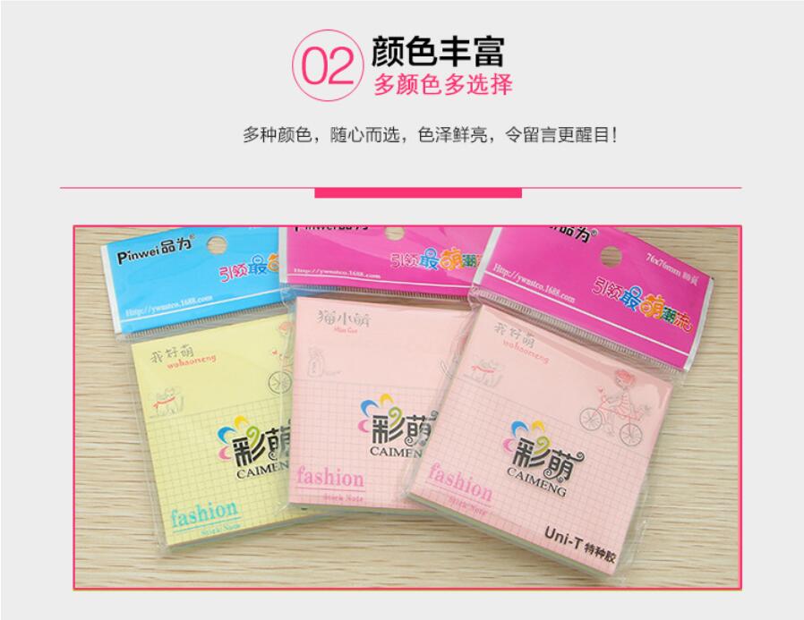 商品名称:品为CM01,3*3彩萌系列卡通易事贴,CM01百事贴,N次贴,便笺 商品编号:18.01.01.0001 品牌:品威 上架时间:2016-10-15 商品毛重:0克 如果您发现商品信息不准确,欢迎纠错;如果您发现有比51文具价格更低的,欢迎举报