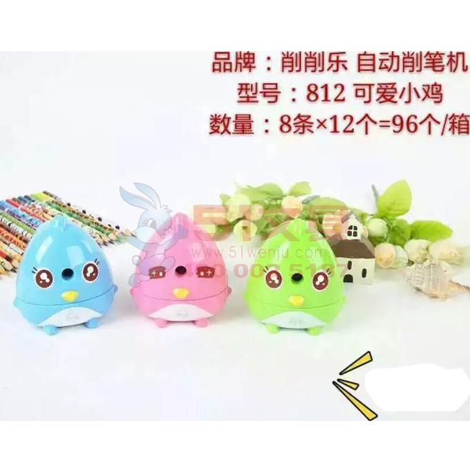 商品名称:812 削削乐 可爱小鸡自动削笔器 商品编号:25.01.01.0812 品牌:削削乐 上架时间:2016-11-23 商品毛重:0克 如果您发现商品信息不准确,欢迎纠错;如果您发现有比51文具价格更低的,欢迎举报
