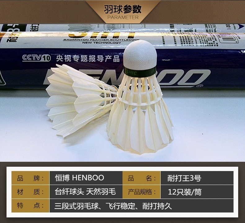 商品名称:恒博耐打王3号三段羽毛球-爆款一口价 商品编号:71.01.04.0003 品牌:恒博 上架时间:2016-12-21 商品毛重:0克 如果您发现商品信息不准确,欢迎纠错;如果您发现有比51文具价格更低的,欢迎举报