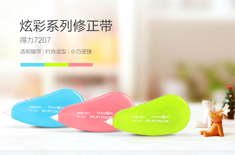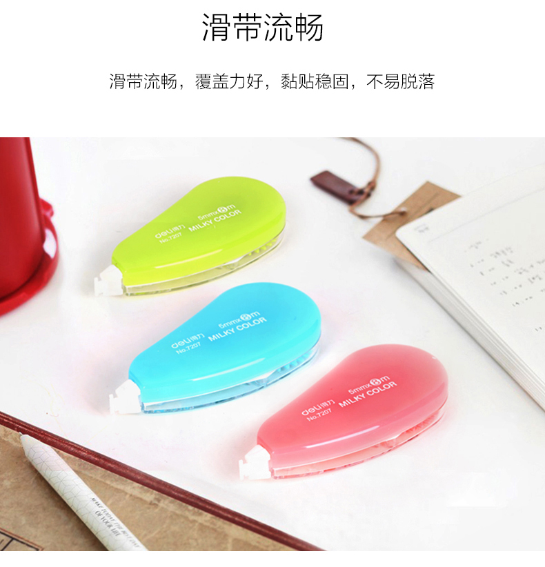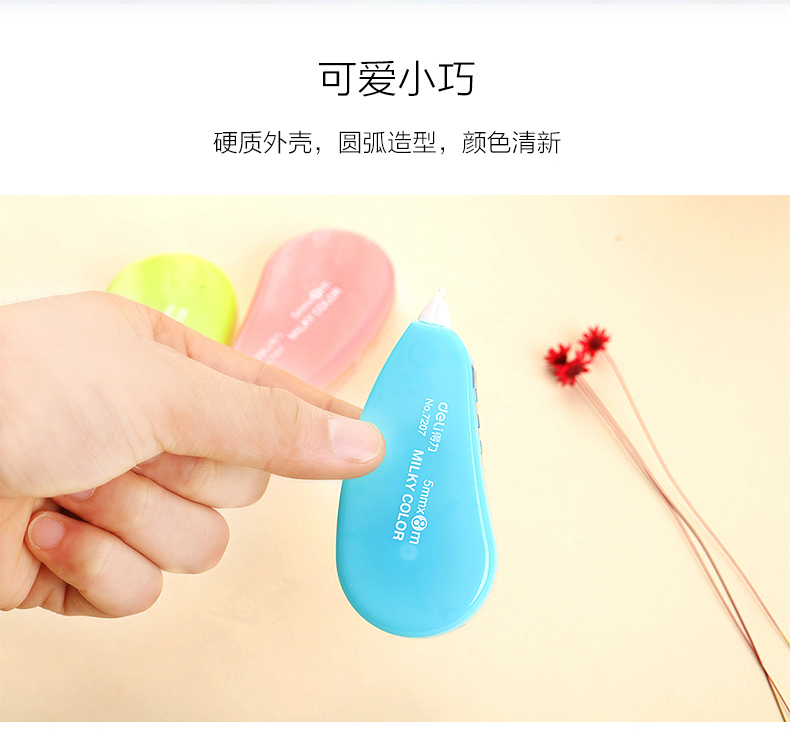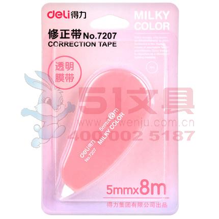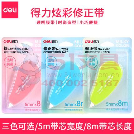 商品名称:得力7207,炫彩修正带(1/24/576)5mm*8米学生修改带/改错带/修正贴 商品编号:12.02.20.7207 品牌:得力/deli 上架时间:2017-02-18 商品毛重:0克 如果您发现商品信息不准确,欢迎纠错;如果您发现有比51文具价格更低的,欢迎举报