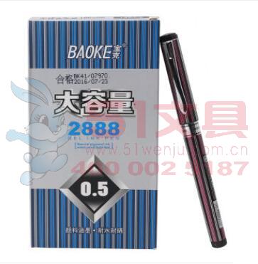 商品名称:2888 宝克 0.50mm大容量中性笔-黑色 商品编号:14.01.01.2888 品牌:宝克/BAOKE 上架时间:2017-02-23 商品毛重:0克 价格单位:支 包装含量:12支/盒,144支/条,1728支/件 如果您发现商品信息不准确,欢迎纠错;如果您发现有比51文具价格更低的,欢迎举报
