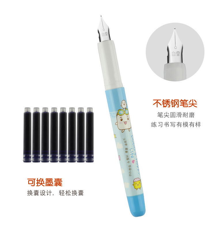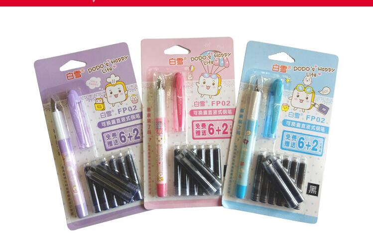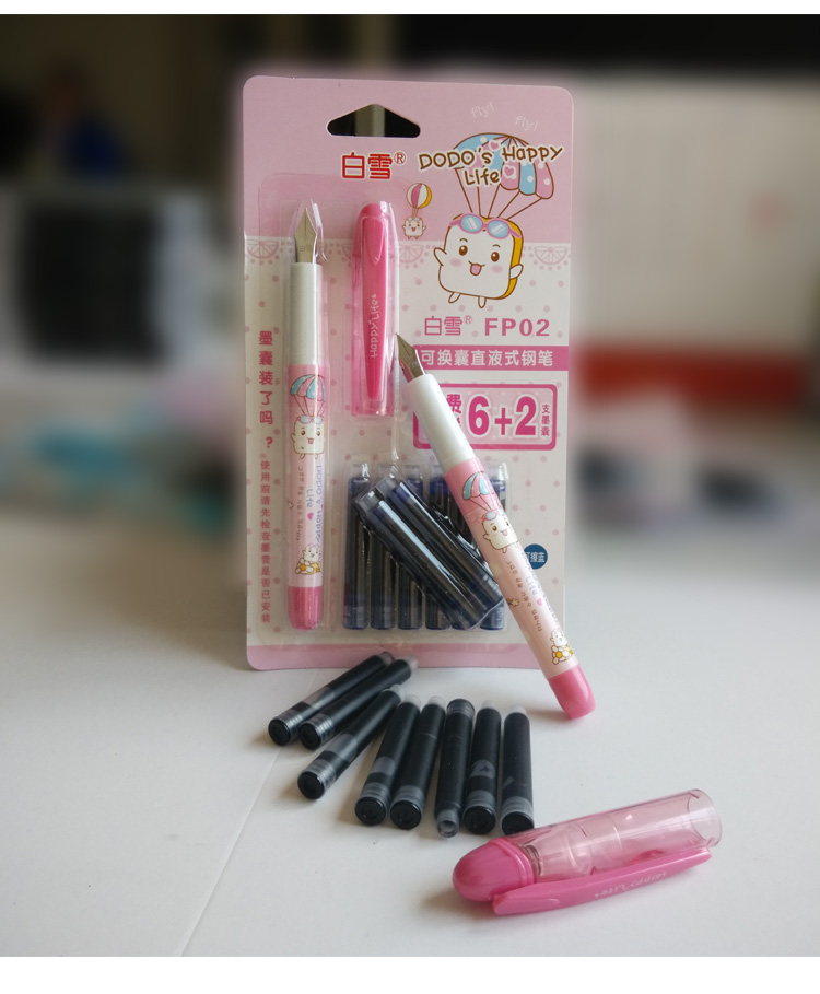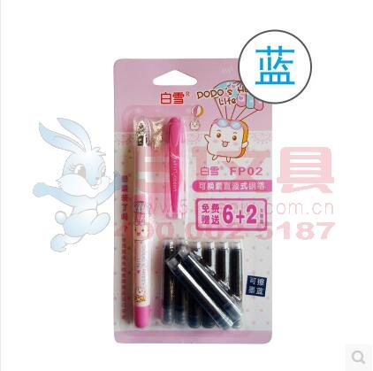 商品名称:白雪FP02,卡装可换囊钢笔-1+6+2 商品编号:15.01.02.0002 品牌:白雪/SNOWHITE 上架时间:2017-03-25 商品毛重:0克 价格单位:卡 如果您发现商品信息不准确,欢迎纠错;如果您发现有比51文具价格更低的,欢迎举报