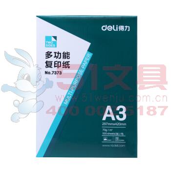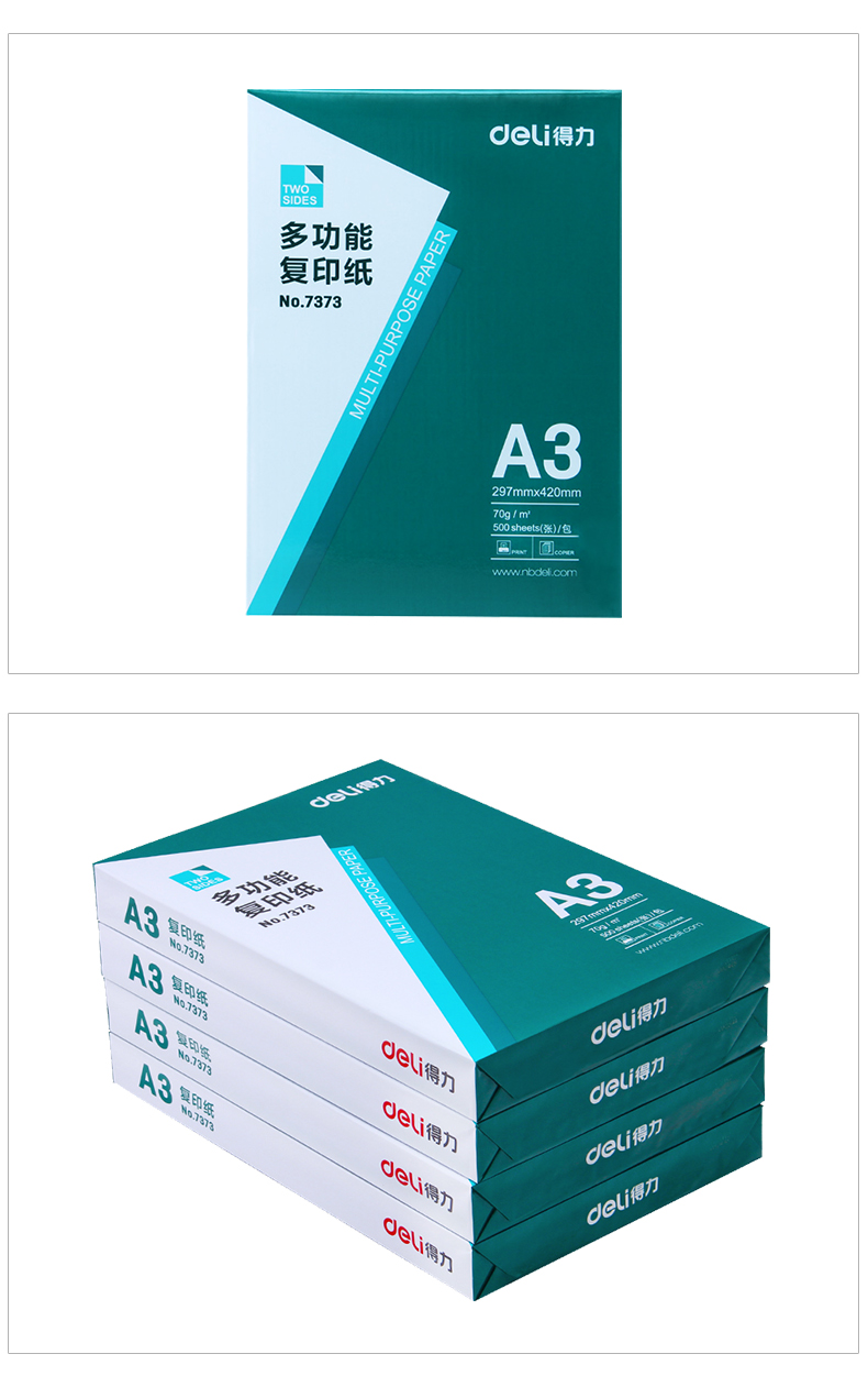 商品名称:得力Z7375,绿A3复印纸,70gA3绿得力多功能静电复印纸(4包装)打印纸,传真纸,帛尚A3复印纸,木尚A3复印纸配套 商品编号:12.06.01.7375 品牌:文具/LZN 上架时间:2017-03-29 商品毛重:0克 标称克重:70g 包装量:4包装 规格:A3 价格单位:箱(4包) 如果您发现商品信息不准确,欢迎纠错;如果您发现有比51文具价格更低的,欢迎举报