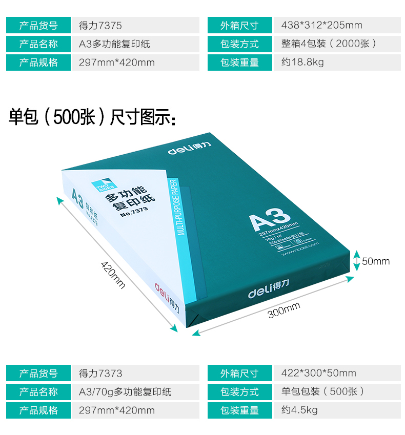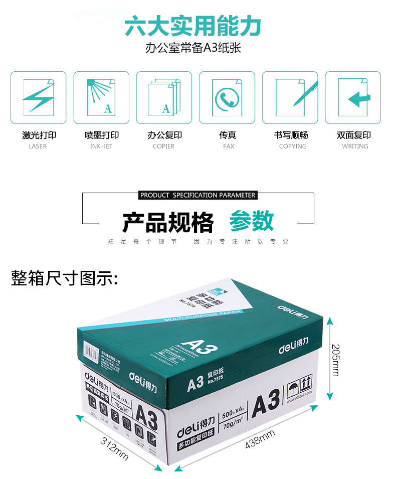 商品属性 [标称克重] 70g [包装量] 4包装 [规格] A3 [价格单位] 箱(4包)
