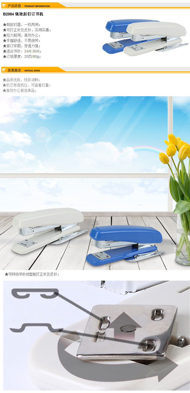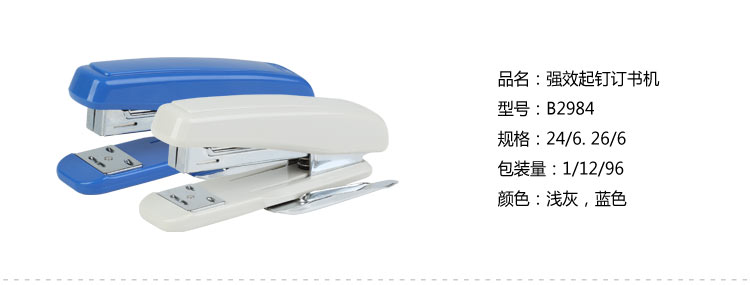 商品名称:齐心B2984,订书机(12#,带起钉器) 商品编号:13.02.01.0106 品牌: 上架时间:2014-09-23 商品毛重:0克 规格:24/6.26.6 类型:25页/80g 含量:1/12/96 起订量:个 如果您发现商品信息不准确,欢迎纠错;如果您发现有比51文具价格更低的,欢迎举报