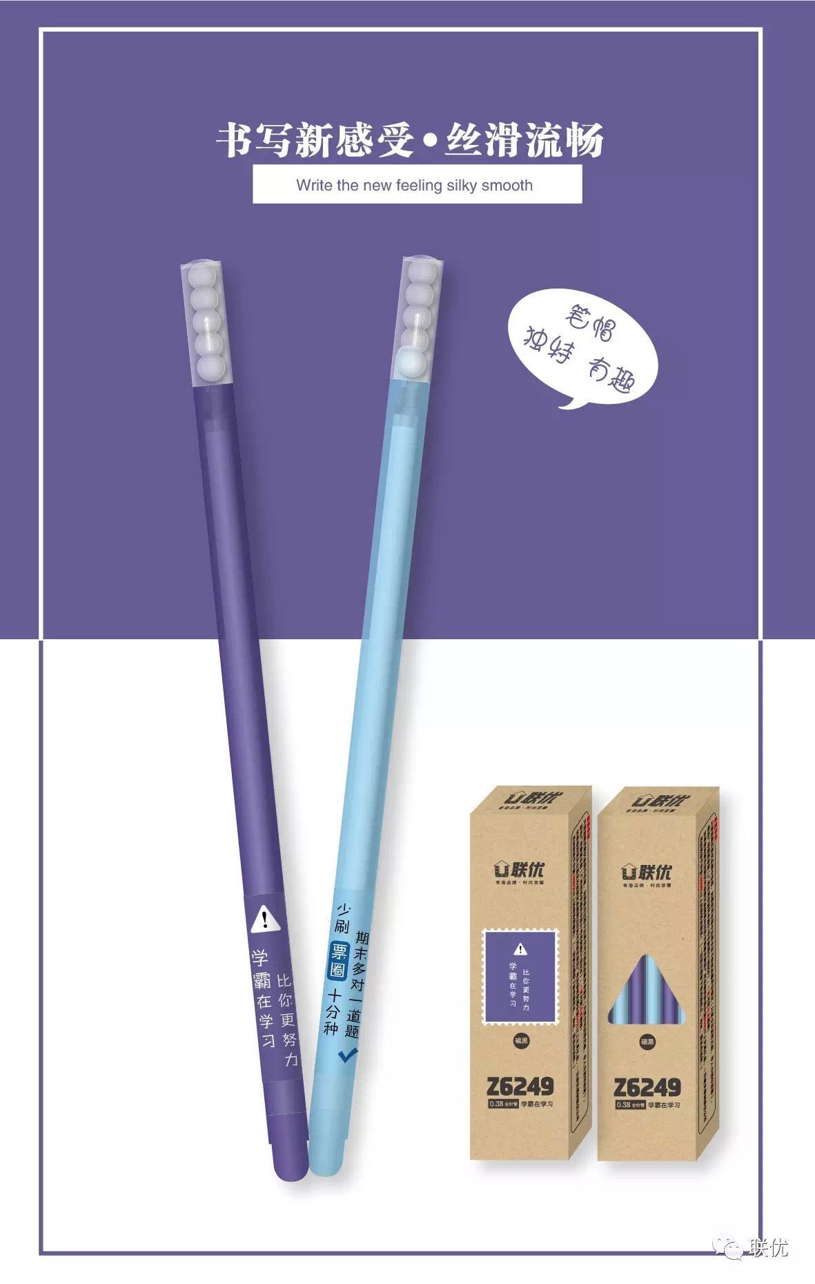 商品名称:联优6249,0.38mm全针管卡通中性笔/学生中性笔(学霸在学习) 商品编号:50.01.01.6249 品牌:联优 上架时间:2017-08-01 商品毛重:0克 价格单位:支 笔头类型:全针管 笔头粗细:0.38mm 包装含量:12/144/1728 如果您发现商品信息不准确,欢迎纠错;如果您发现有比51文具价格更低的,欢迎举报