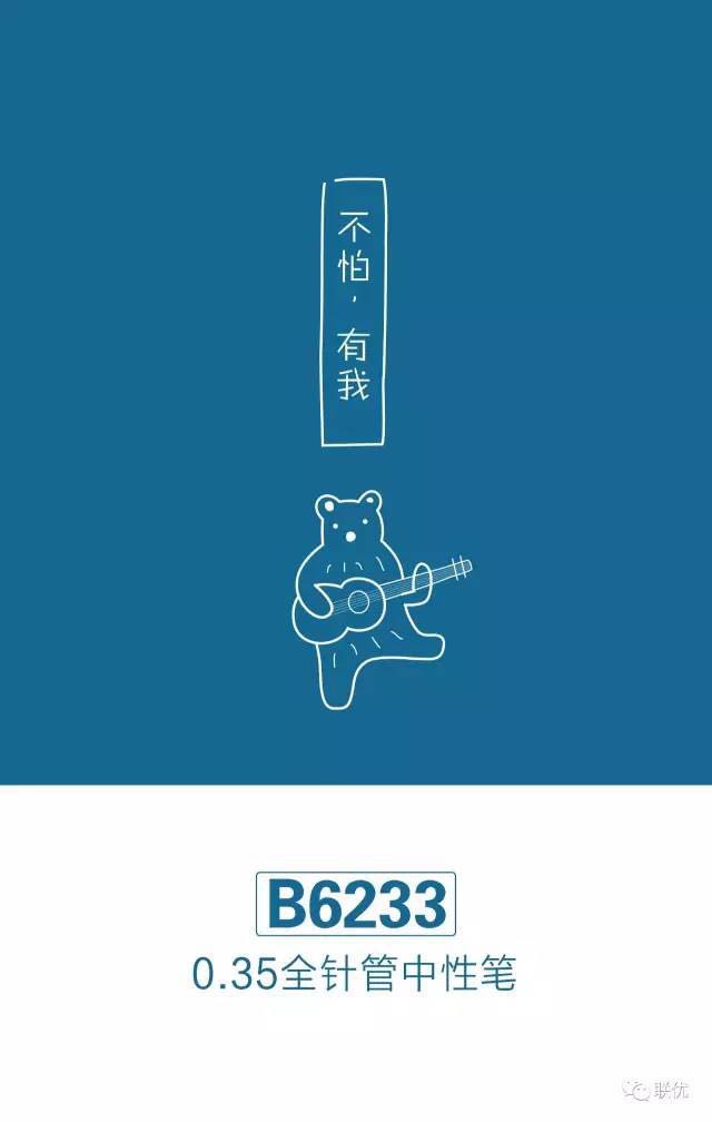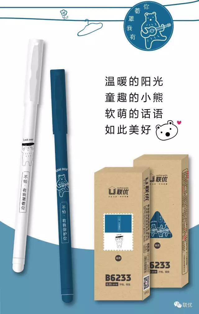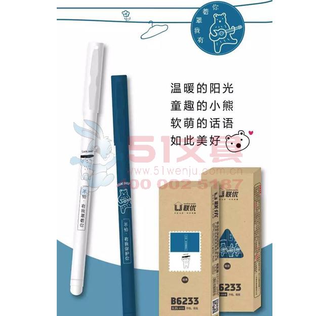 商品名称:联优6233,0.35mm全针管学生中性笔/卡通中性笔(不怕,有我) 商品编号:50.01.01.6233 品牌:联优 上架时间:2017-08-01 商品毛重:0克 价格单位:支 笔头类型:全针管 笔头粗细:0.35mm 包装含量:12/144/1728 如果您发现商品信息不准确,欢迎纠错;如果您发现有比51文具价格更低的,欢迎举报