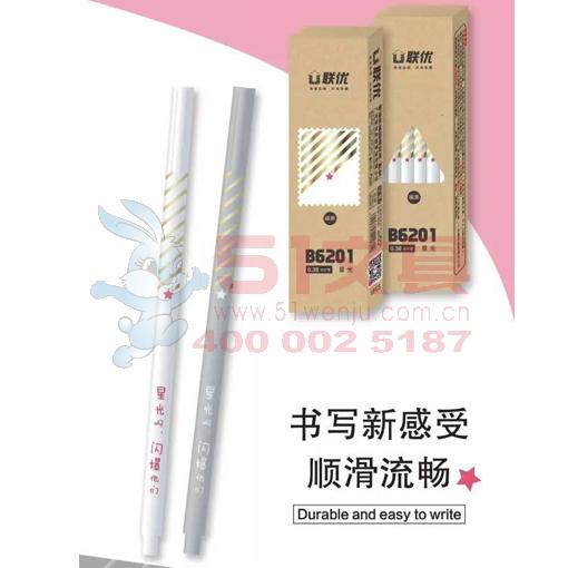 商品名称:联优6201,0.38mm全针管卡通中性笔/学生中性笔(星光) 商品编号:50.01.01.6201 品牌:联优 上架时间:2017-08-02 商品毛重:0克 价格单位:支 笔头类型:全针管 笔头粗细:0.38mm 包装含量:12/144/1728 如果您发现商品信息不准确,欢迎纠错;如果您发现有比51文具价格更低的,欢迎举报