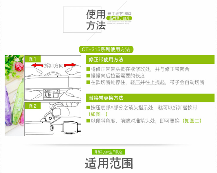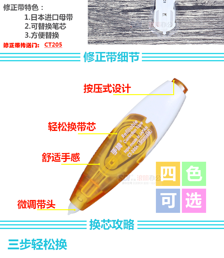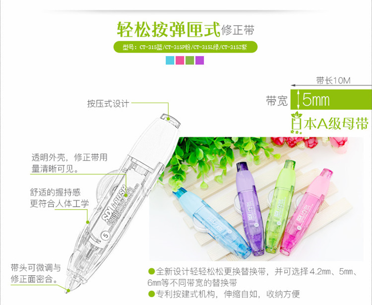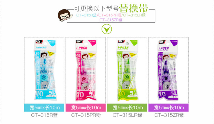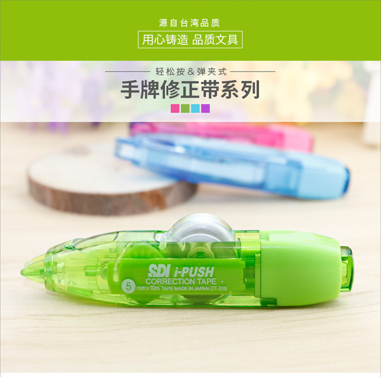 商品名称:台湾SDI 手牌 CT-315 修改带改正带日本A级母带5mm*10M 商品编号:59.01.07.0315 品牌:手牌/SDI 上架时间:2017-08-04 商品毛重:0克 如果您发现商品信息不准确,欢迎纠错;如果您发现有比51文具价格更低的,欢迎举报