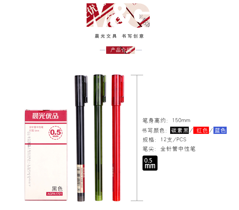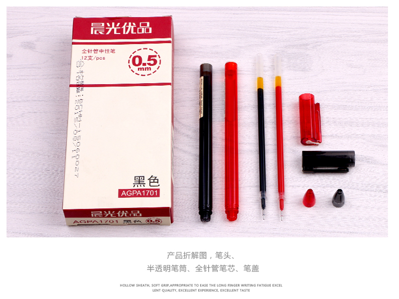 商品名称:晨光AGPA1701,优品全针管中性笔签字笔水笔/办公文具财务-0.5mm 商品编号:61.03.01.1701 品牌:晨光/M&G 上架时间:2017-08-06 商品毛重:0克 价格单位:支 笔头类型:全针管 笔头粗细:0.5mm 包装含量:12/144/1728 如果您发现商品信息不准确,欢迎纠错;如果您发现有比51文具价格更低的,欢迎举报