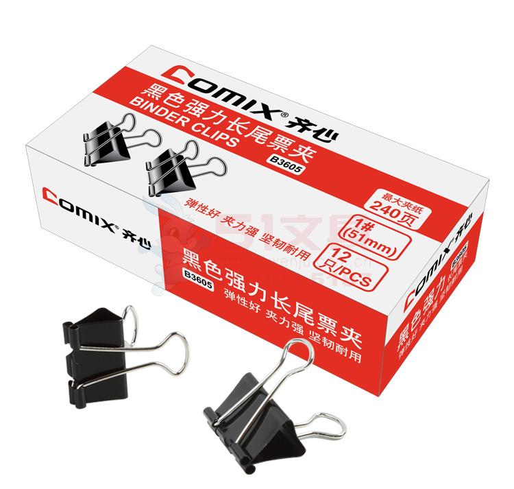 - 商品名称:齐心B3609,黑色强力长尾票夹(5#,75页,盒装)